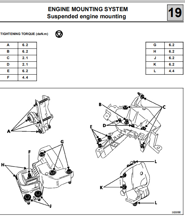 • engine mount bolts torque 6.2 daN.nm = 62Nm (Left Sided Mount) 1 daN is equal to 10 newton.jpg