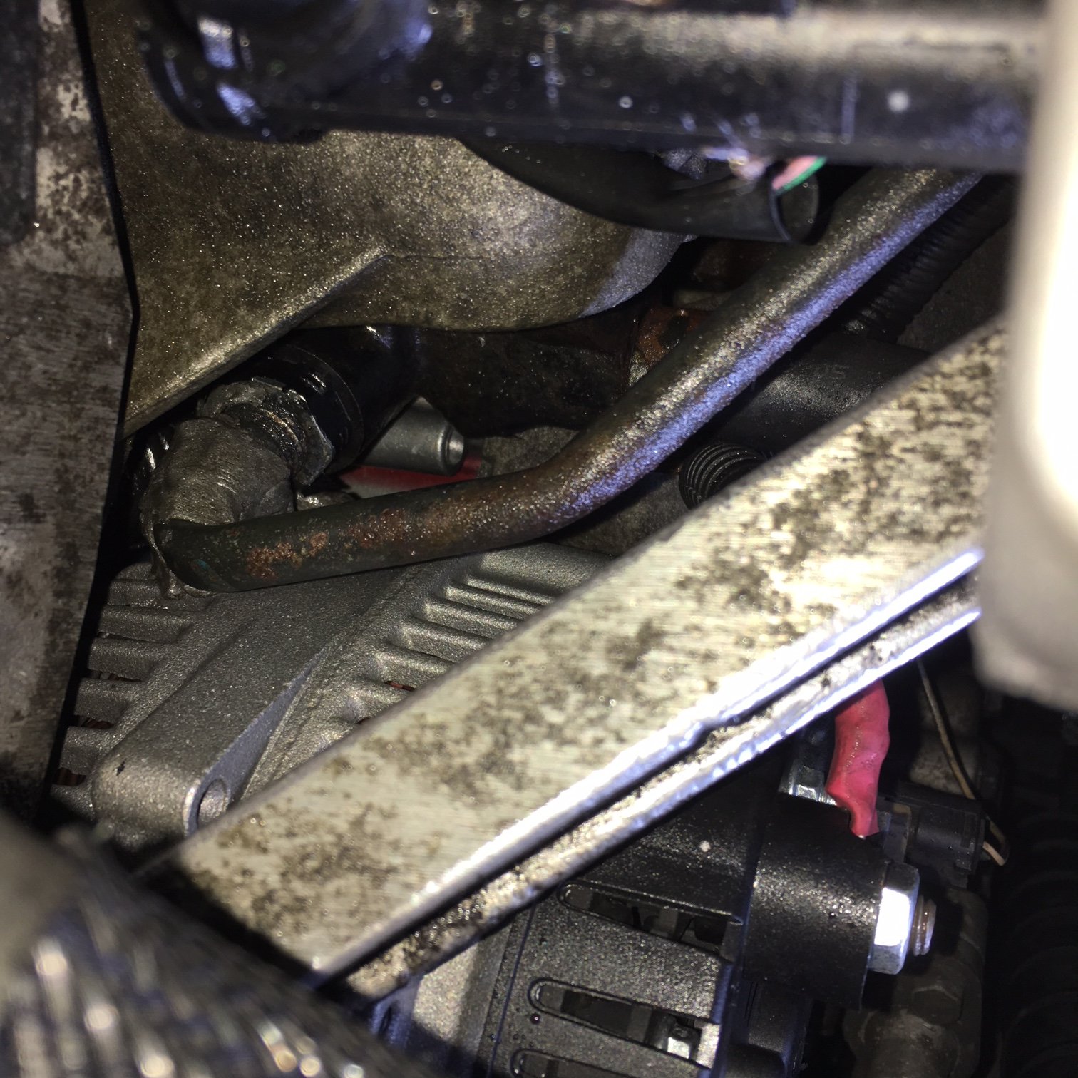 The power steering system has a link by the alternator, its leaking from the pipe it self as I hope the following pics will highlight: