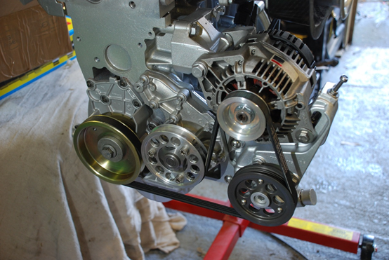 Sounds like a plan! I've used a 4pk1110 belt, but I'm using the lightweight pulleys (4pk) as apposed to the 6pk standard. Length should be very similar though. In this photo the power steering pump is still installed but I've since swapped this for the PM power steering delete kit which retains an idler pulley in the same position so belt remains the same.Thanks for your help @robzracing
