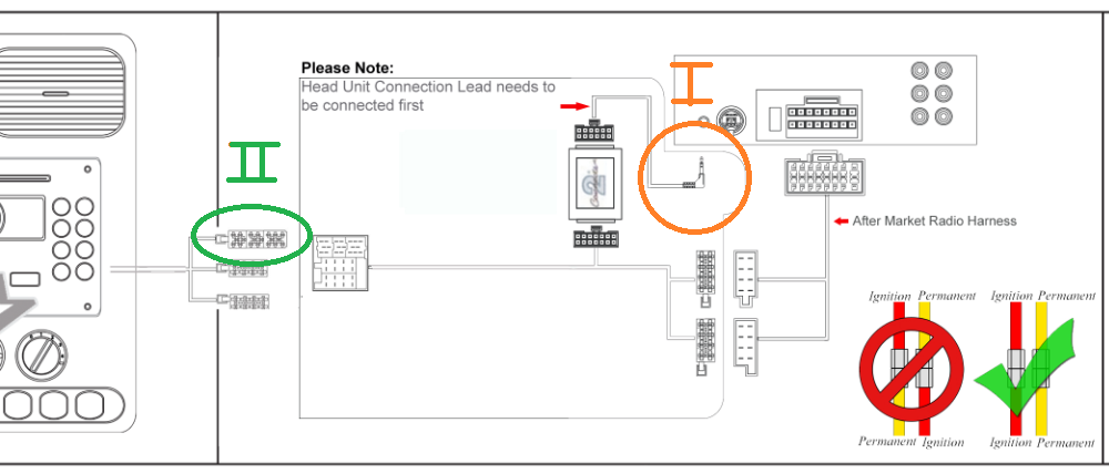 The main problem beside that is that my Alpine head unit (CDE-140e) doesn't have the small jack plug input, only an aux input at the front of the player, so I don't know where to plug the Connect2 wire (orange no' 1).
