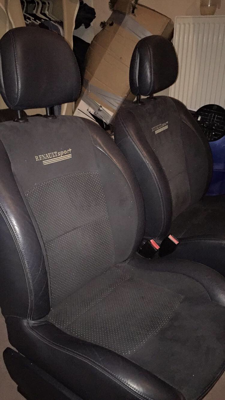 Recently I have been given a Clio 1.5 dci. Its the 65 version, I originally owned a 206 but my mother gave me opportunity to have the Clio whilst she was buying a new golf. I took this opportunity and sold my 206. So I now owned a Renault Clio 1.5 dci 52 plate it sits with 90,000 on the clock, After getting the car I started noticing things to do with the car that was getting annoying. Firstly the drivers side seat had a hole in the edge of the seat due to a sunroof leak that has now been fixed. I started looking at a new interior when I came across the 182 Renault sport interior, It immediately caught my eye and I was quickly scanning eBay etc to find a decent interior. After looking for a while I found a Clio 182 that was being made into a track car the seller was ripping out the seats to replace them with buckets. I was able to talk him down to £100 for the front and back seats, so I sent myself on my way to Nottingham to pick them up!