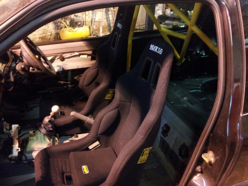 Stripped it out and but roll cage and bucket seats in. Decided to go for a black and yellow theme:
