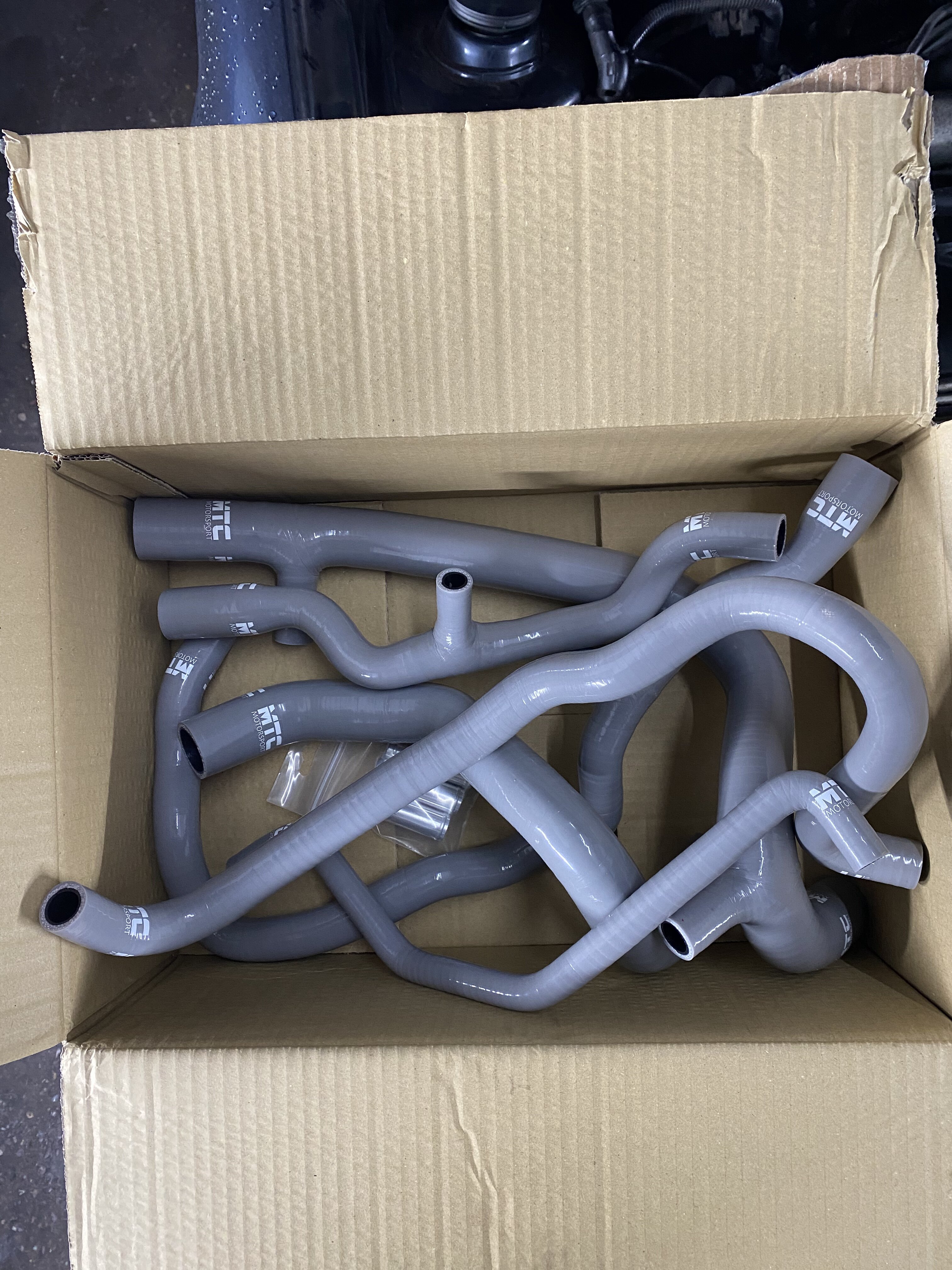 MTC Coolant hoses turned up yesterday, went for grey as got a blue/grey thing going on.