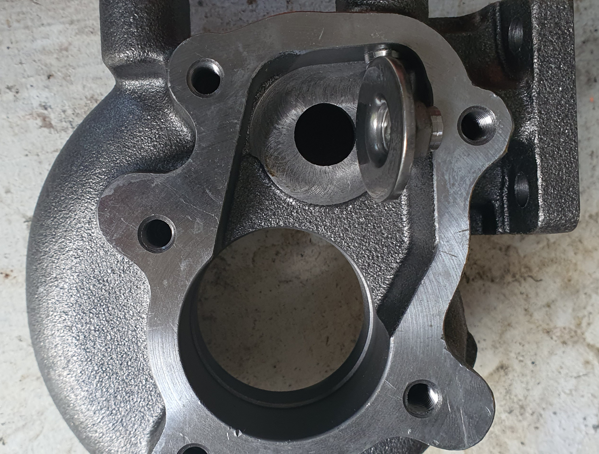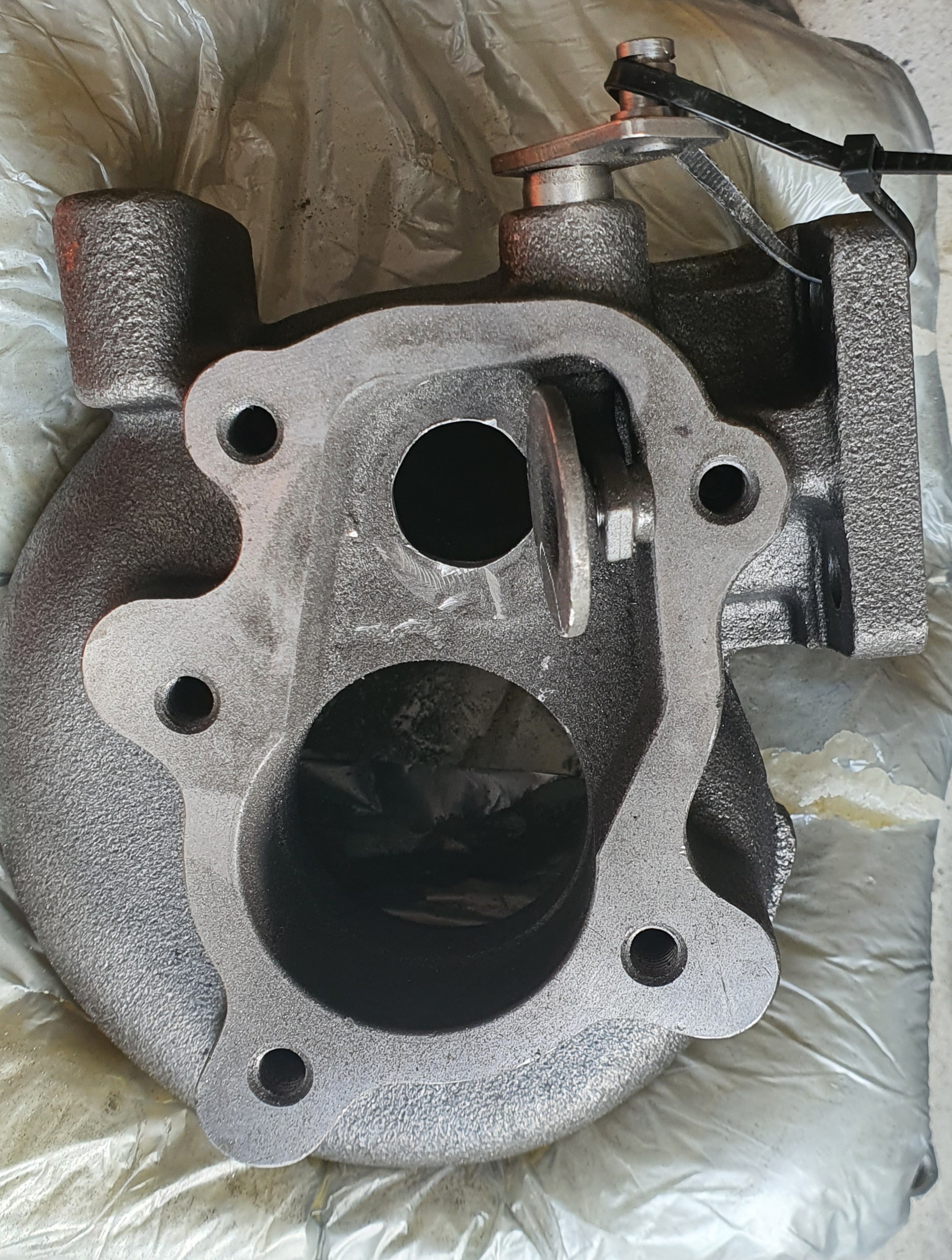 I've been working on tidying up my downpipe and turbo today, as you can see the waste gate hole is rather small!!!