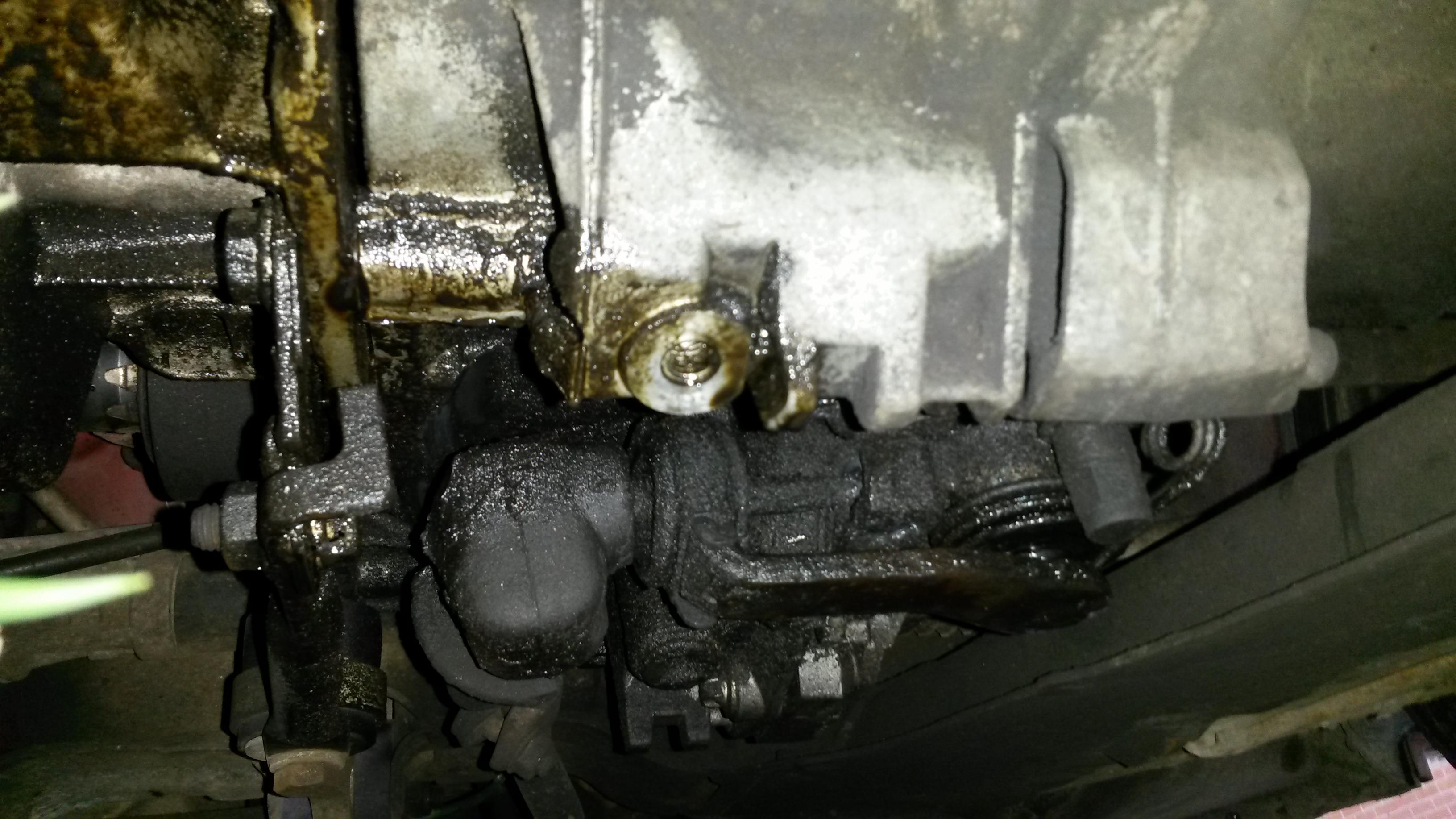 looks like a selector seal is leaking theres also a engine oil leak
