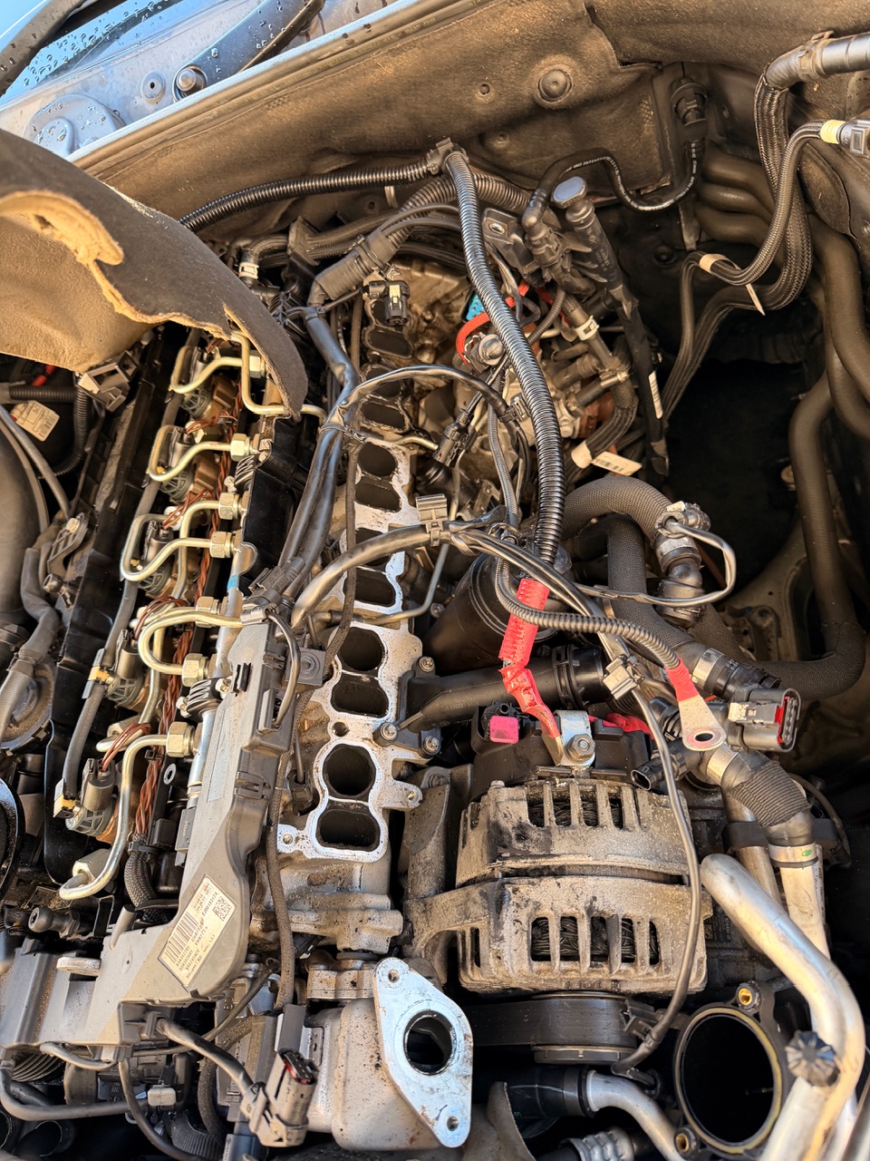 Started by finishing the removal of the inlet manifold. Such a f**k on with all the wires running across it.