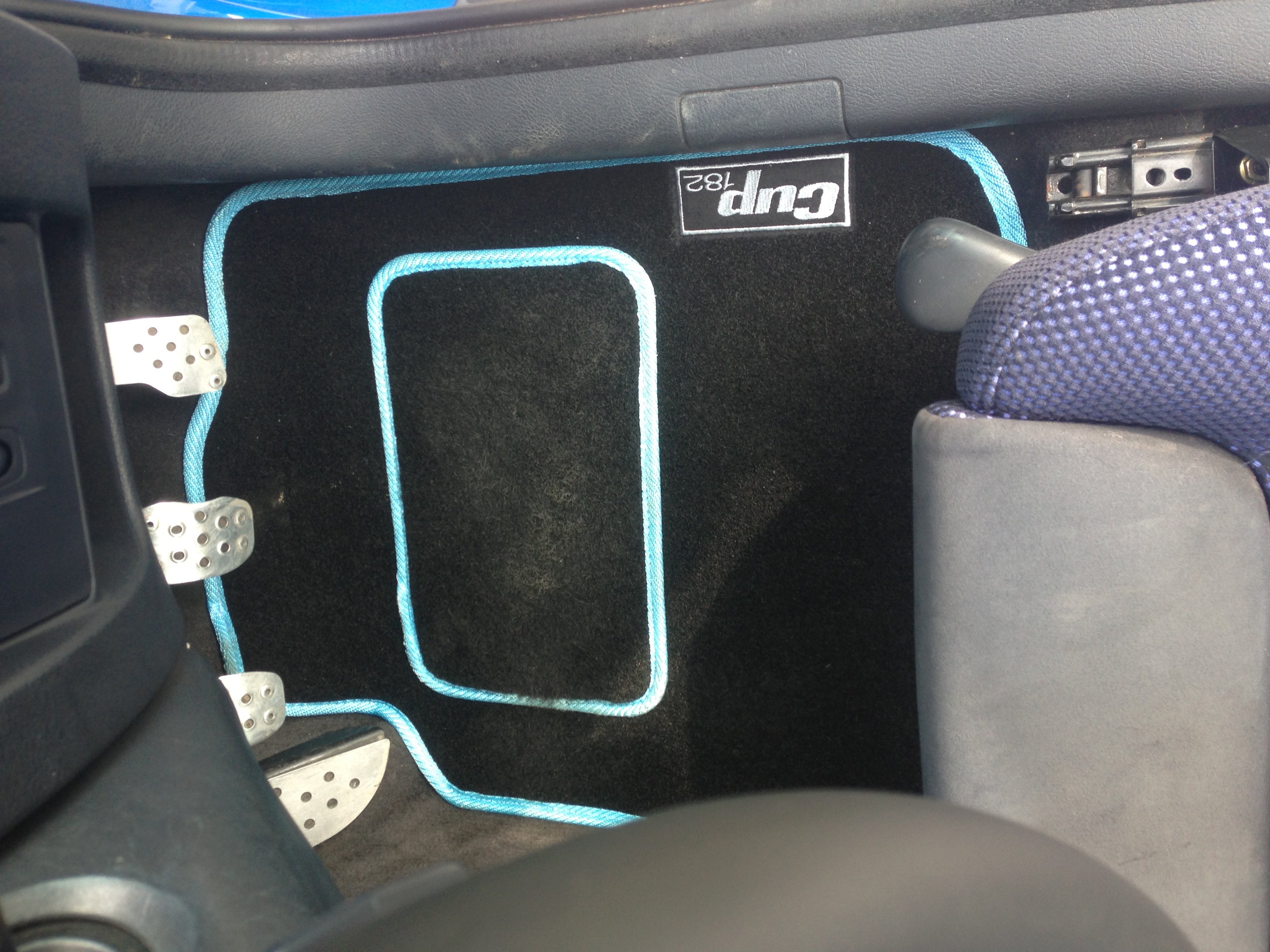 The story starts off with my old Arctic blue 182 being written off by a complete turnip speeding and thinking his brakes were better than they were and shunting me. It was a write off and not salvageable. Wanting another 182, but something a bit special I was on the look out for either a trophy, racing blue or liquid yellow full cup packed 182. And somehow after only a few weeks, a very tidy racing blue 182 with both cup packs became available to me and at trade price. So I found who the previous owner was on the forum (soph), saw a little about it on some threads and at the garage I managed to get it on a lift and give it a thorough inspection. Absolutely nothing wrong with it mechanically, sitting on eibach sportlines, yozza exhaust, all the little bits like lights, bulbs, aerial, exhaust mounts, new thumb grips etc had been taken care of and the only visible thing wrong with it was lacquer peel on the roof. So I put a deposit down and after a week of sleeping like a kid on Christmas eve, I finally picked up my Racing Blue 182 yesterday. Here are some pictures after a good clean, de-stickering, quick polish and headlight restoration (bullets are currently being repainted).