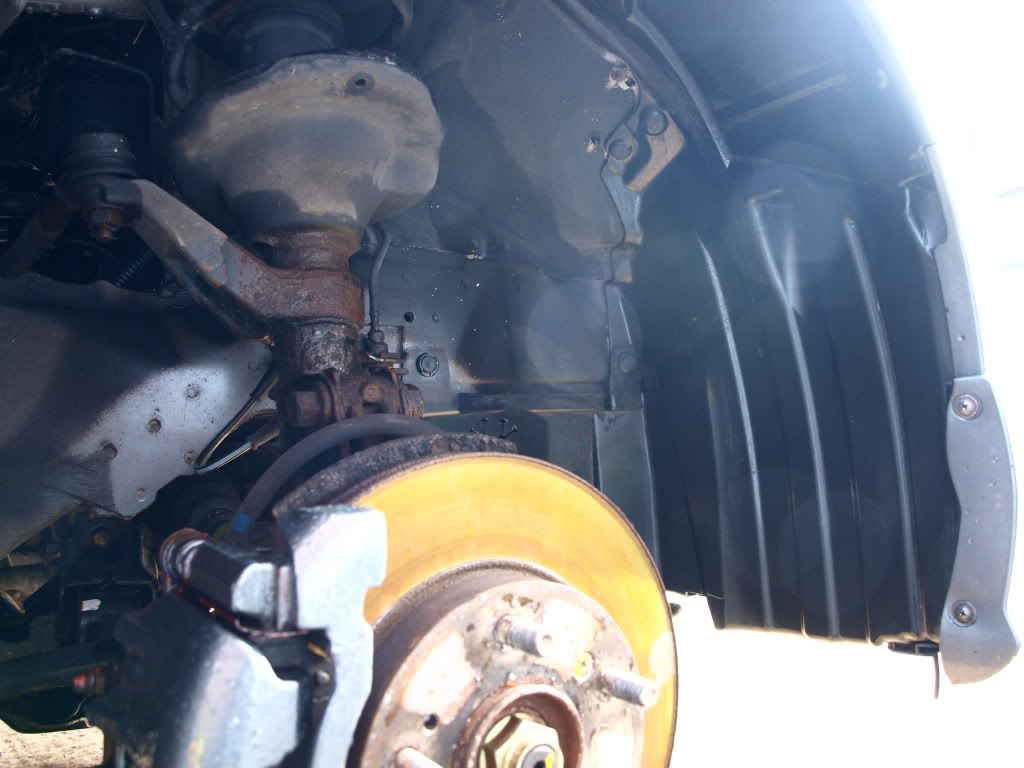 jacked up , wheels off , detailing began .. this is after i had done first and 2nd stage on paint preperation