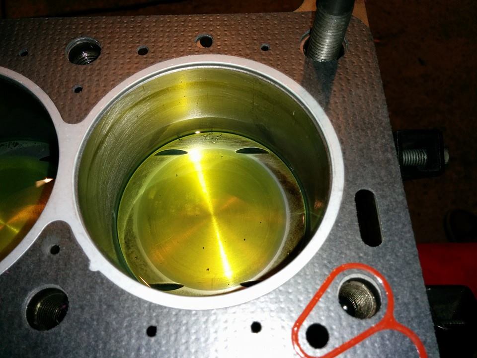 Block with pistons adapted for lower compression (9:1)