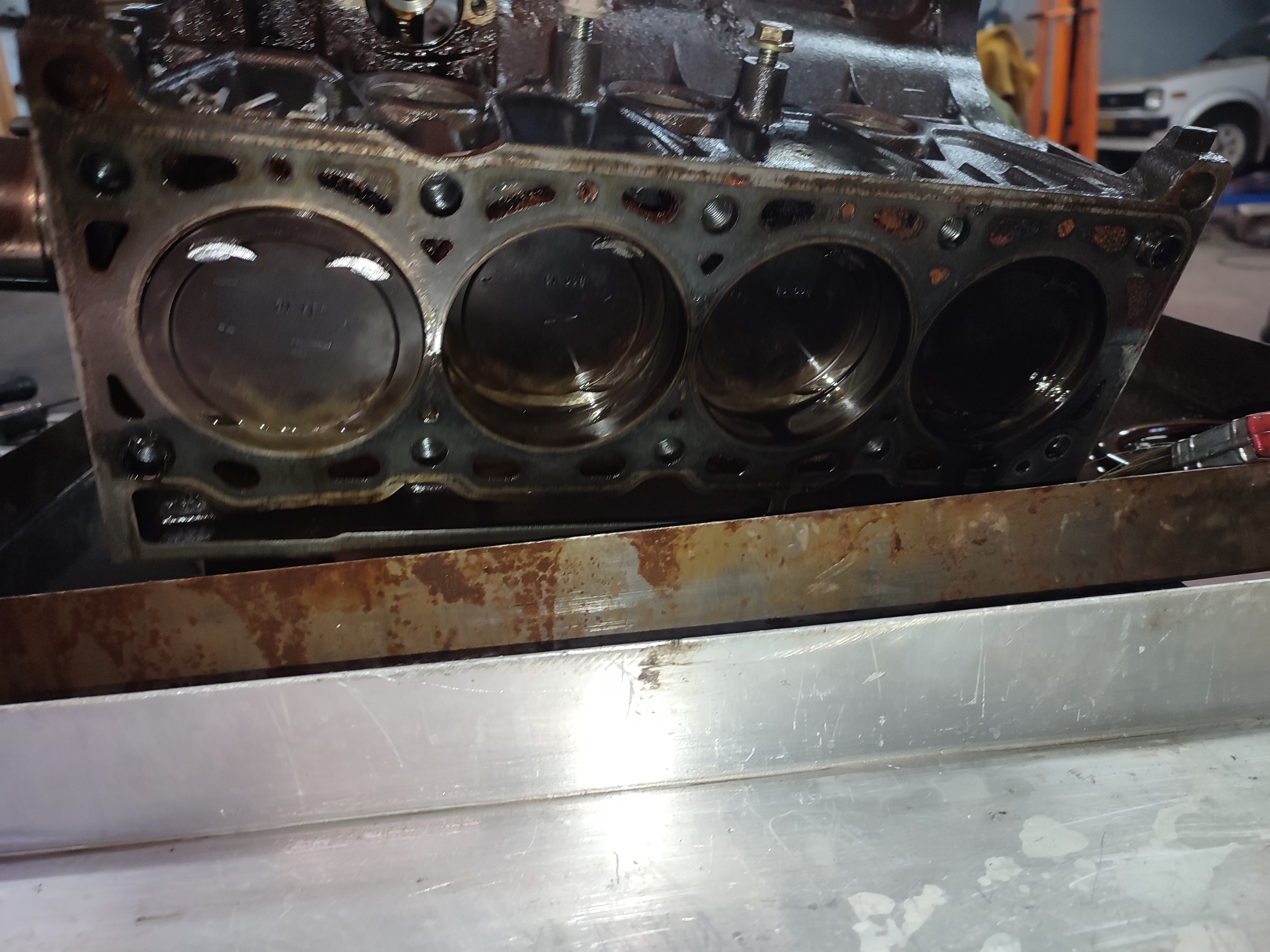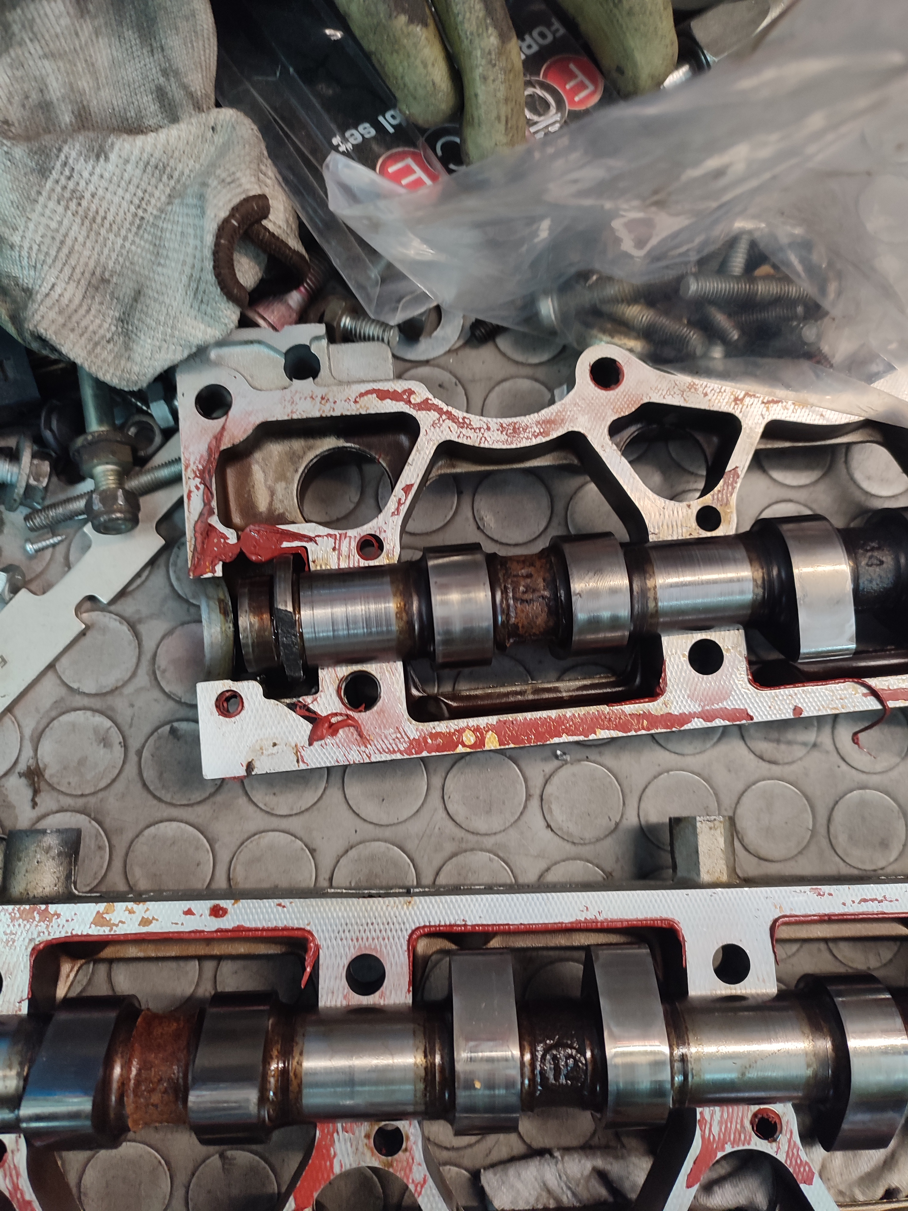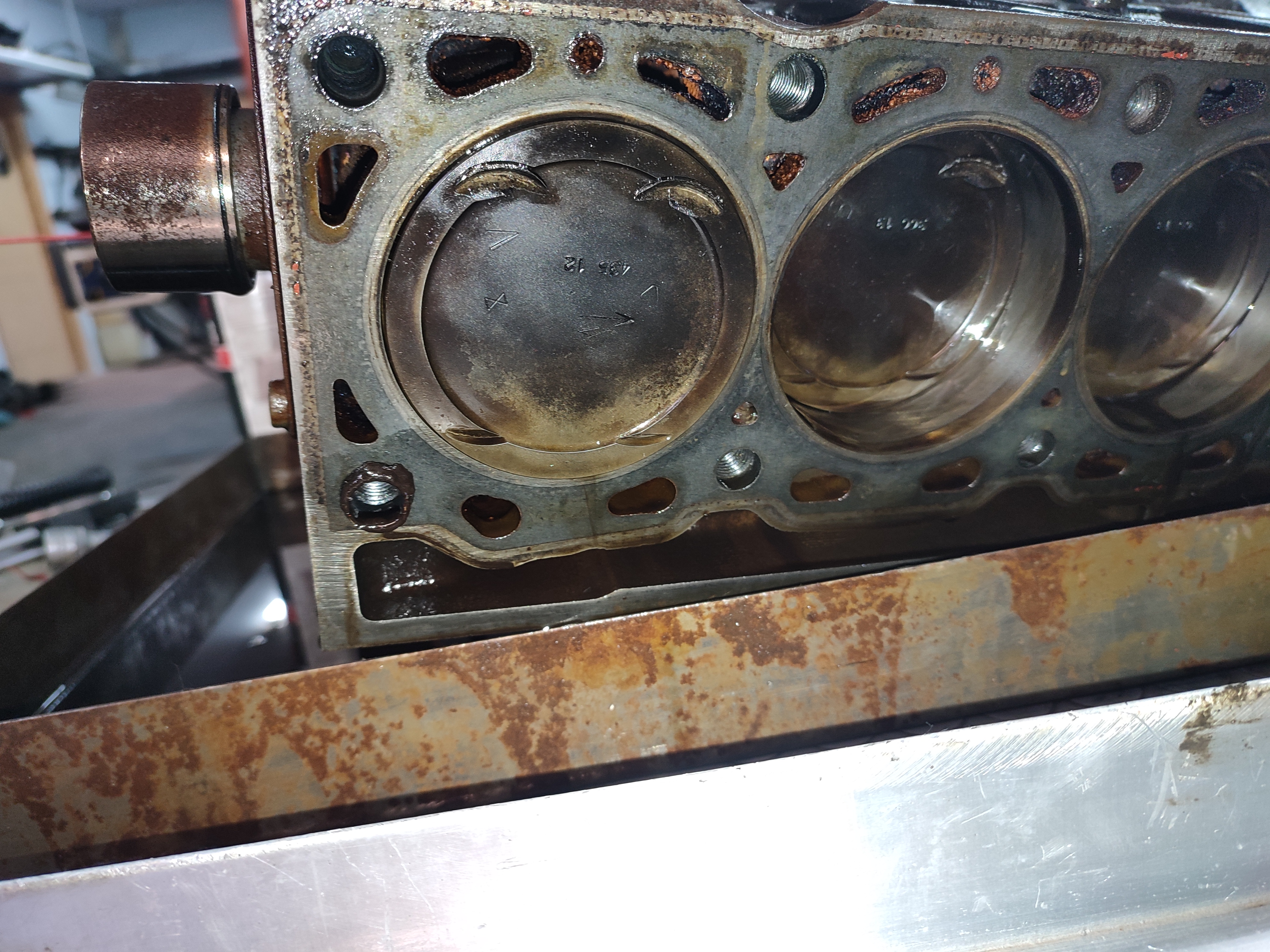 Hi guys , so for those that are following my recent posts i finally disassembled my f7r engine to check the condition of it , and unfortunately its not in the best shape that i wished for ....the damage the motor has its from a money shift that send the engine revving a lot higher than it should and as a result my valves touched the pistons , but havent bend at all. The other problem is that the pistons has seized and i have measured them at 82.5mm instead of 82.655 that renault states them, i will post also some photos for you to check. Also there is some damage on the camshaft as you will see on the pics. Fortunately the cylinders are in good shape no cracks or ovals and no marks inside. Crankshaft also in good condition since no wear at the bearings. So i am in search for pistons , 99.9% in stock diameter i will know for sure on monday , but the only thing i can find is forged ones , do you know anywhere i can find oem pistons ? Even in larger diameter . The other question is if i go for forged pistons what else should i upgrade , to make them work ? Will i need any trimetalic gasket , such as cometic , or anything else that i am not thinking of ? The plan for the motor was to make it fresh and put some reprofile cams , an aluminum pulley and a slightly lighter flywheel , balance the crankshaft and put it back in, no crazy power numbers . Any info appreciated !