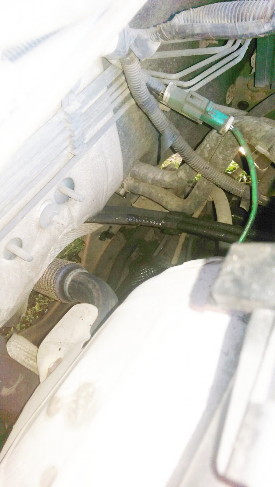 We have a leak of what I think is brake fluid, from a pipe at the back of the engine, I'll attach a brightened picture. I don't know what the bottom pipe is supposed to be for or if it's supposed to have something on it.