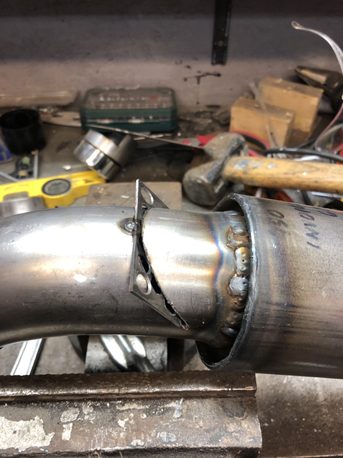 I started with just two, but was still borderline, so added two more. On my car, they are between the silencer and the exit. I just cut a slot into the pipe, slid it in and welded. Then put the next one 3" away, rotated 180 degrees, then another 3", rotated 180 degrees again. As I said, using two got me from 102dB to about 100. The second two got it down to 97dB.