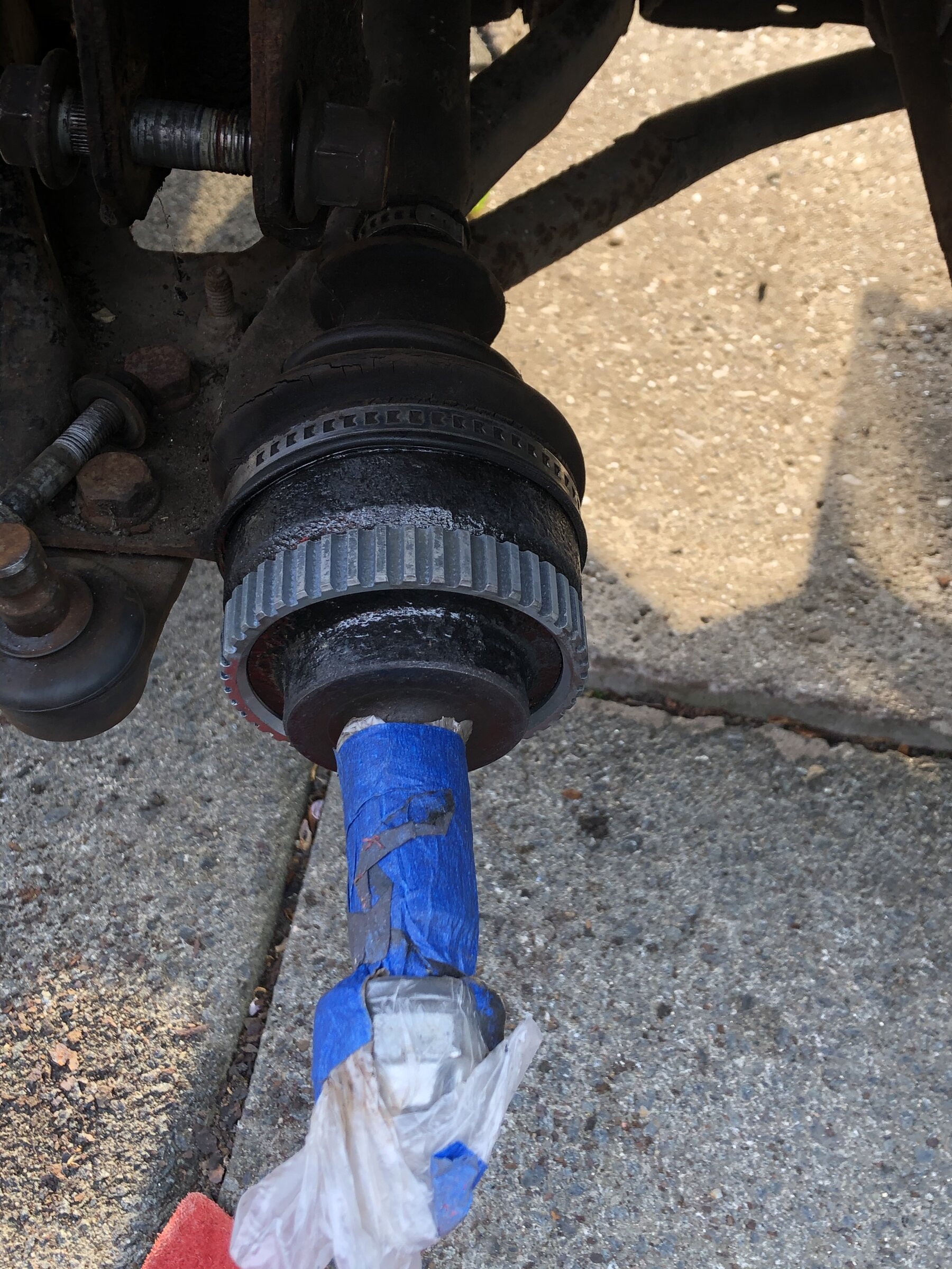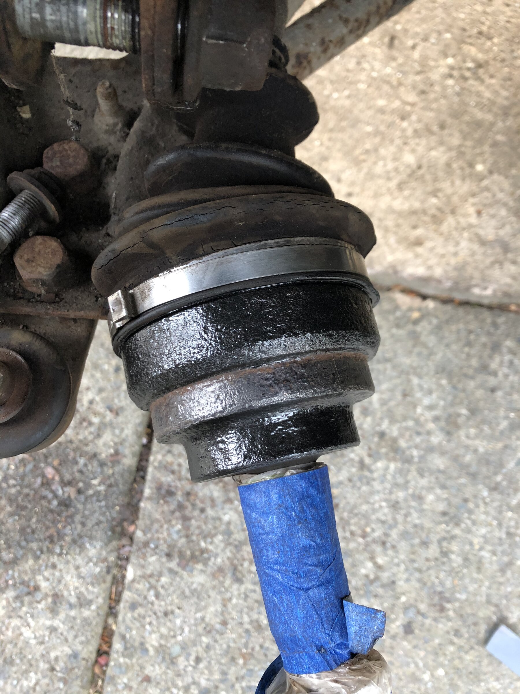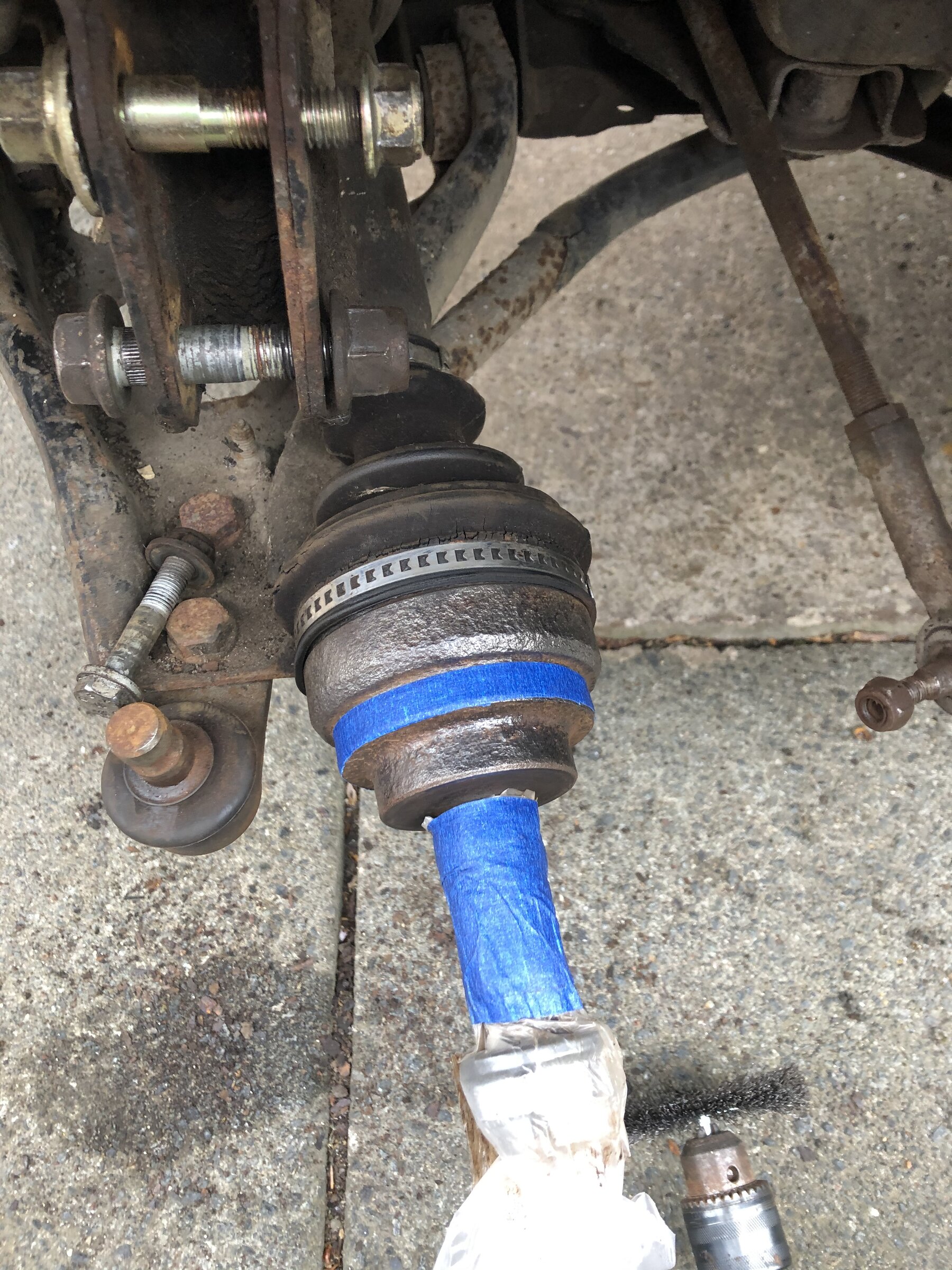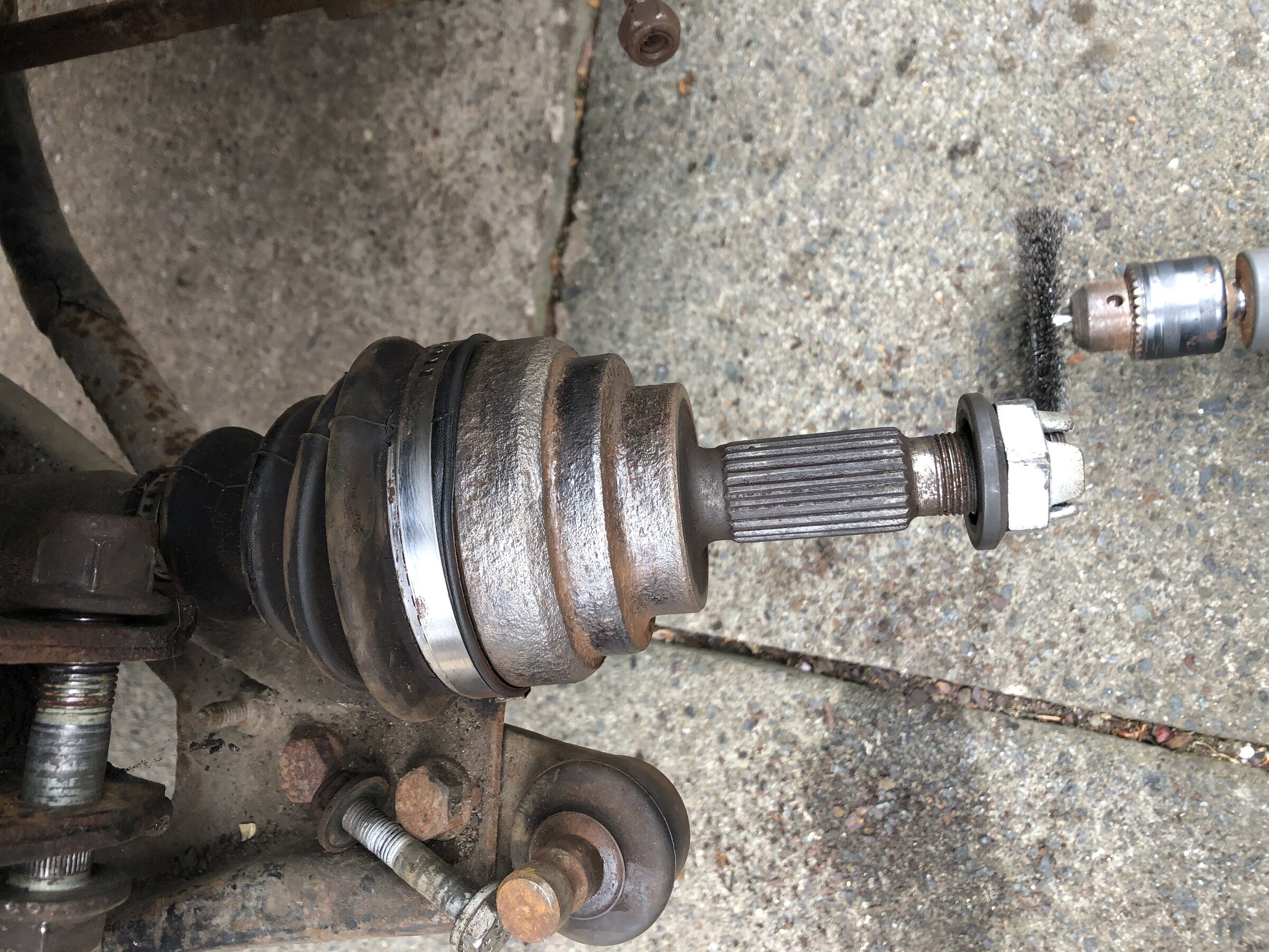 Anyway they're both off. One CV boot looks on its last legs and weirdly the back of one hub looks like its been ground. Discs and pads have got next to no wear on them so must have been fitted not long before being parked up. oh. and might be my eyes but i think one of the track rod ends might be bent aswell.