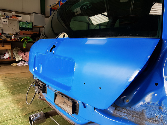 Got more done on the RB. Today me and Will got into work early and made a crack on the flatting. We flatted all the panels in 2000 and then went over with a trizac 3000 pad to even it all out. He was much quicker and better than me, but having 2 people on it mad lighter work. The bonnet, boot, doors and quarterss are now flatted, ready for polishing up. There was no point doing the lower part of the car as the finish is really good and you dont notice it.