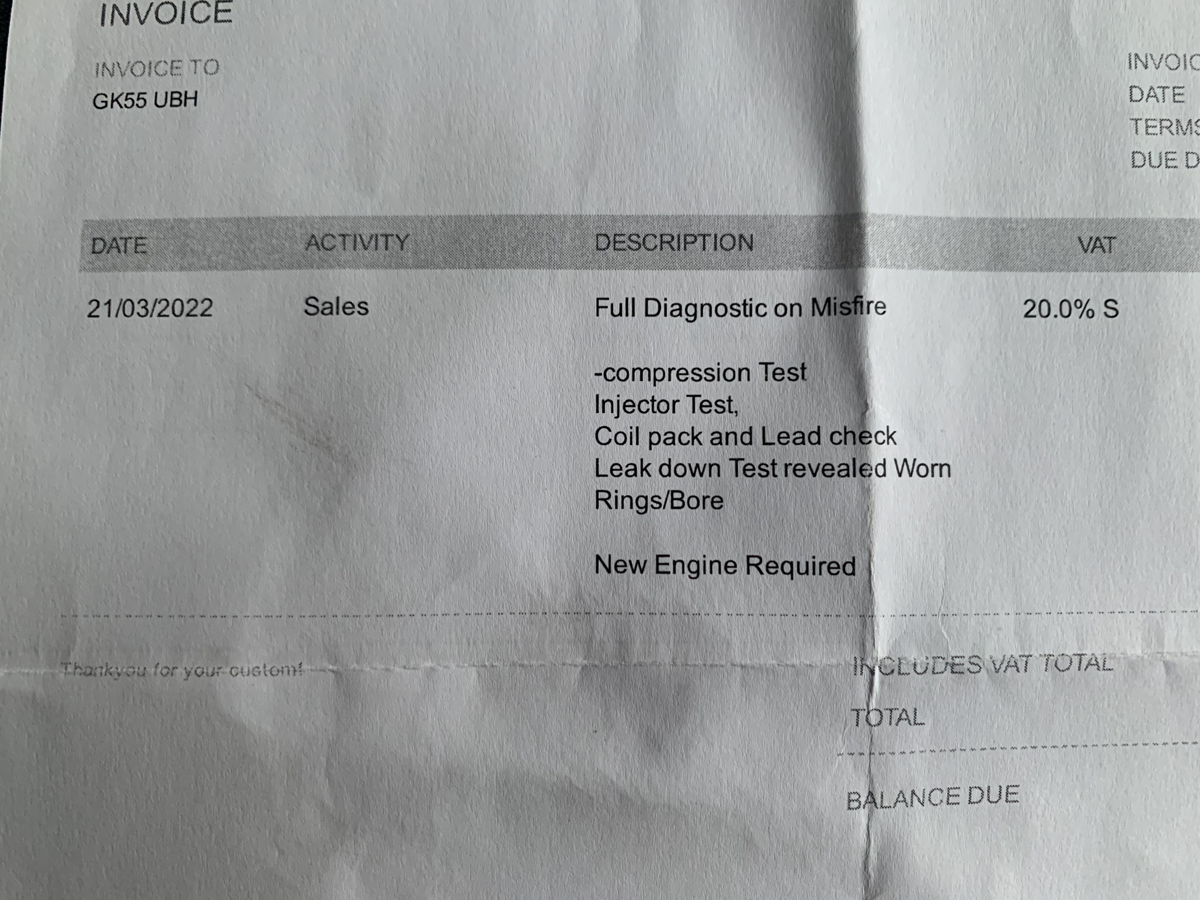Total cost - £150 & a few beer tokens…quite the difference from the initial ‘new engine required’ diagnosis.