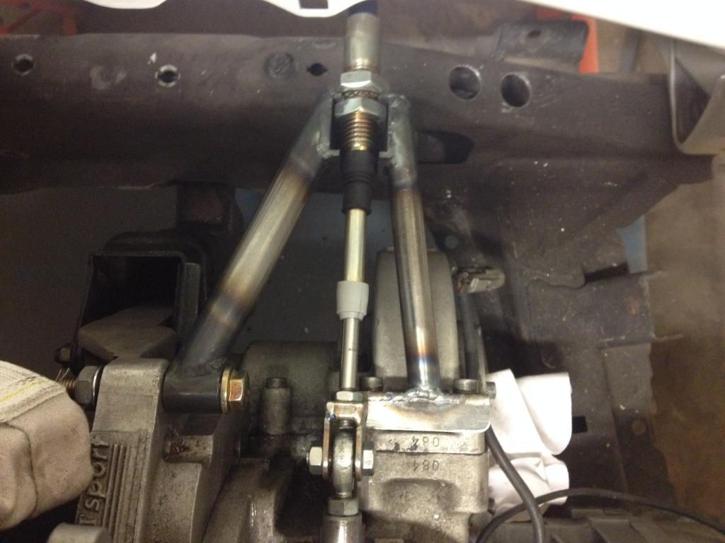 At the gearbox end, some more jiggery pokery, made up another bracket, there wasn't a lot to work with so hopefully this will be sufficient, time will tell if it breaks.