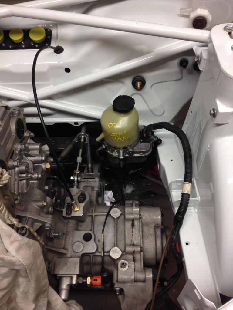 Got the Astra PS pump mounted, managed to get it tucked right into the corner. Used part of the standard astra bracket with some bits chopped off and then added some new supports onto the subframe.