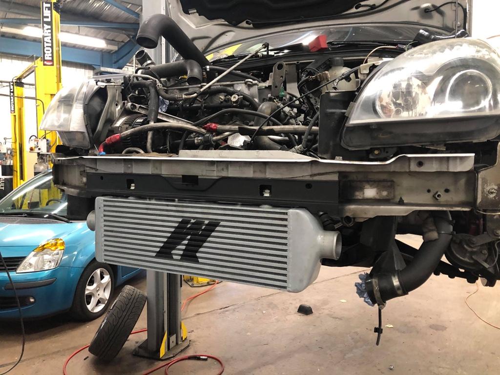 I have the same intercooler, it’s a beaut isn’t it!! Mine went on my Clio 182 and I mounted it upside down as it fits nicer, the pipes are off centre.. (I can’t quite tell from your pic if it defo the same as mine)