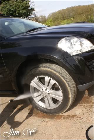 Continually being rinsed with the pressure washer to remove residues, and finally sheeted with an open-hose to aid drying.