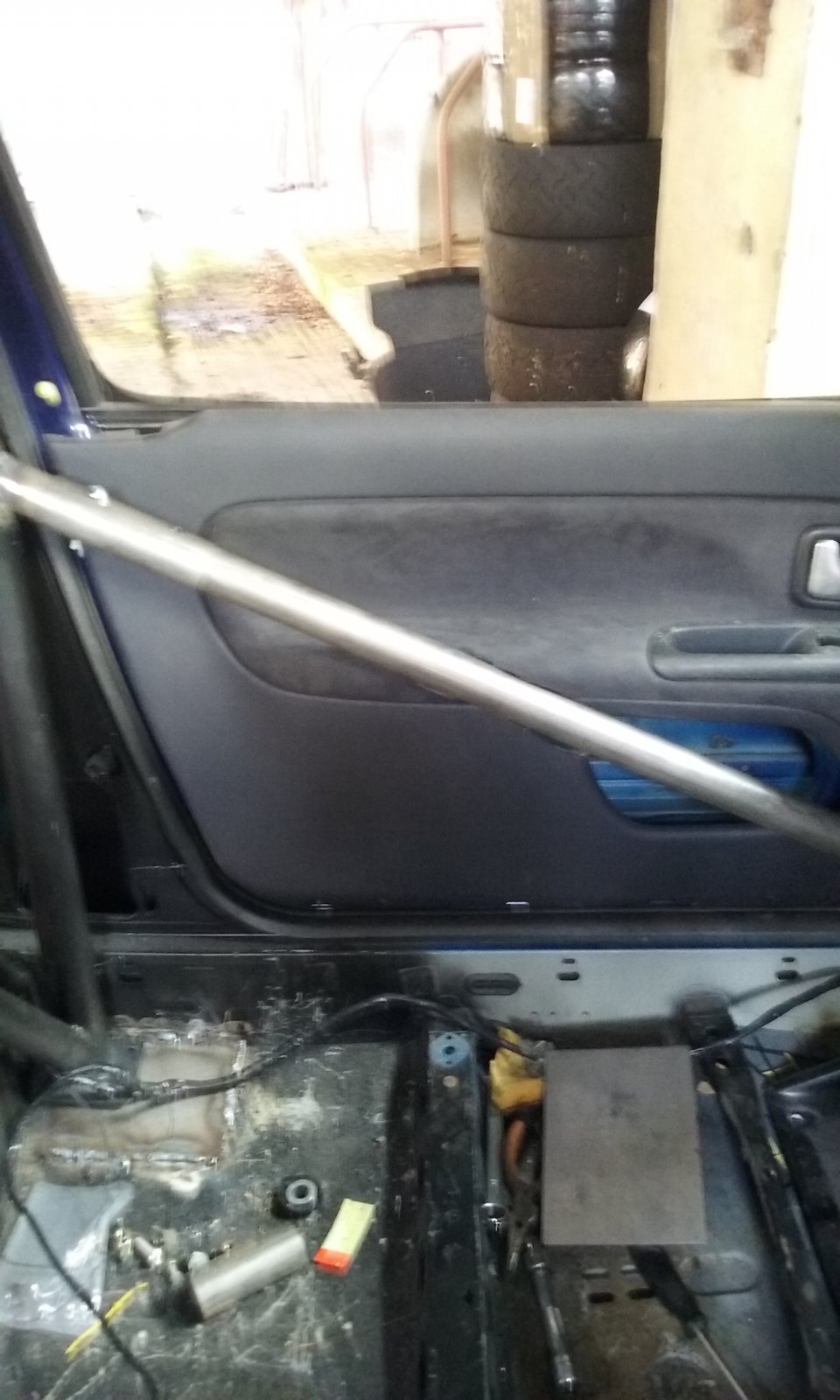 I stripped out everything including the dash and loom and put a bolt in cage, it is impressive none dash dodger and with twin diagonal. I changed the exhaust to a Janspeed system, suspension to Spax with European tarmac spec springs, polycarbon windows with sliders, new disks and Mintex 1155 pads and all the usual safety items needed. It took me months and having written it I wonder how it took so long but there are only so many hours in a Saturday afternoon. Anyway she looked good on her 16” rims and after I set the ride heights, front toe out (10 mins) and camber (1.5-neg) she was ready. I took her up the road and she seemed good.