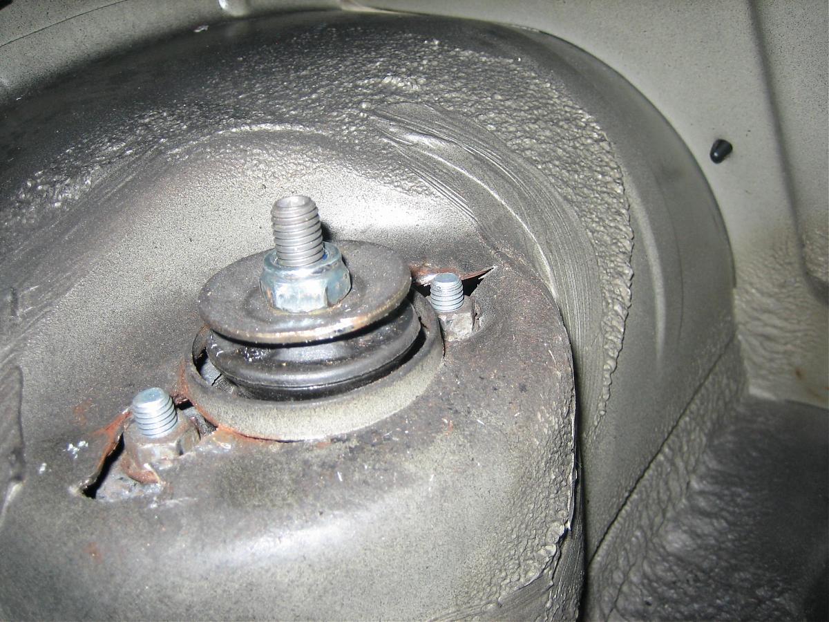 Apparently the way that the rear dampers are attached (two bolts hold the strut in from the underneath) puts lots of stress on the sheet metal that the bolts go through. Under lots of hard cornering or on a very old car the sheet metal is known to snap: