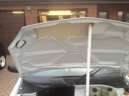 Also had to do some modifications to the inner skin of the bonnet so it would fit with my longer trumpets and filter, I still didnt think the bonnet would close but it does! Note the special edition, racing motorsport bonnet prop!