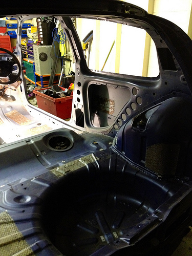 I still have other brackets to cut off and more holes to cut/swage with different size tank cutters but have quite simply run out of time as tomorrow the car goes away to have the cage and a few other bits done.