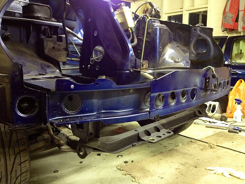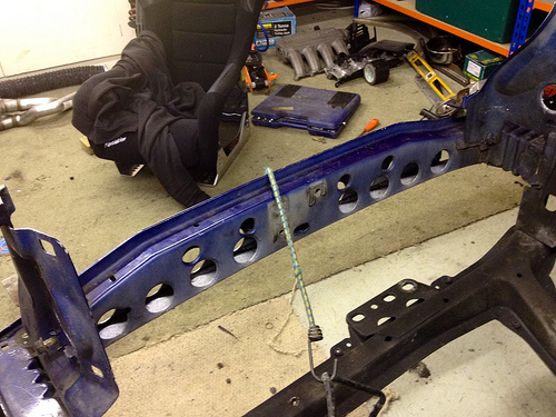 Got a spot weld drill bit whilst at work today so I could crack on and get rid of all unnecessary brackets. PITMFA I offically hate the job, although once done I then could hole saw abit more and swage where I could (thanks to Lewis kindly lending me his swager