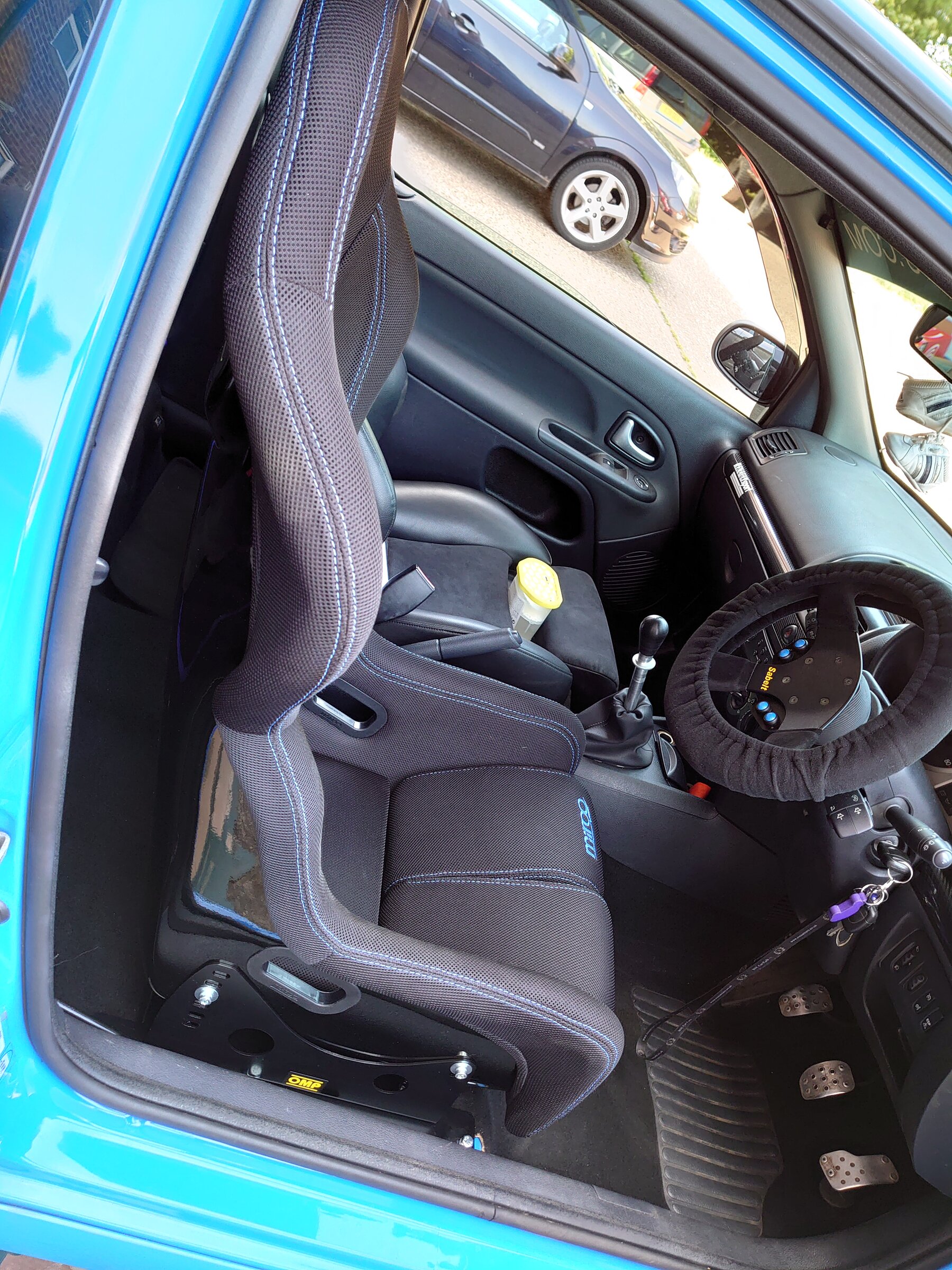 Seats arrived today so managed to get one in. Jon Fozz Vbd Frames, omp side mounts and Mirco RTS 3d seats with Blue stitching.