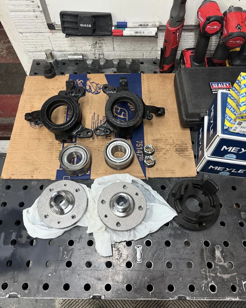 Got the steering knuckles sent off to @FrogJam Motorsport and they soon set about putting new bearings and hubs in.