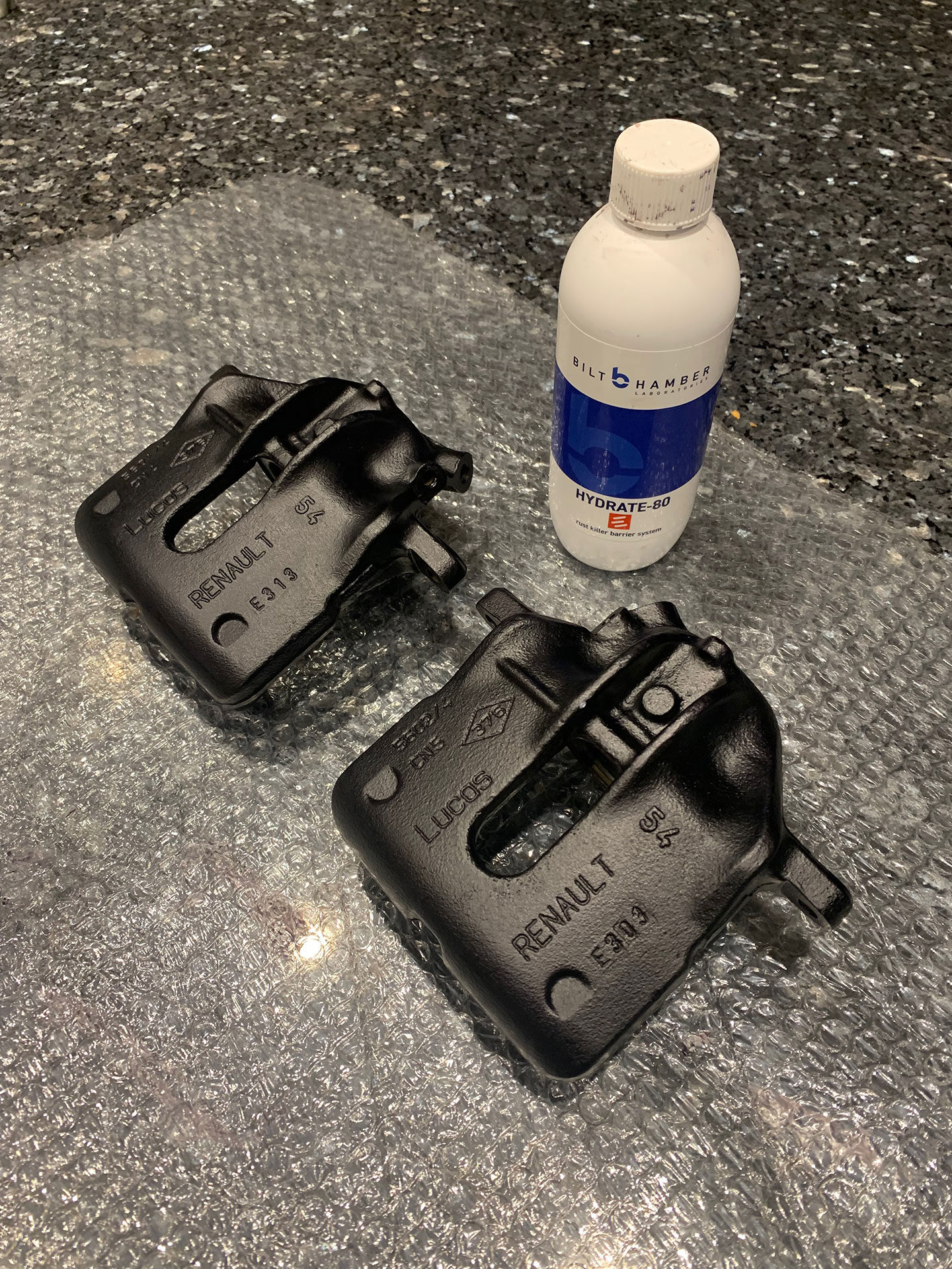 A company also sent me 5 litres of their RUST-E Rust Remover to evaluate - nice of them - so what better opportunity than to try them on my calipers.