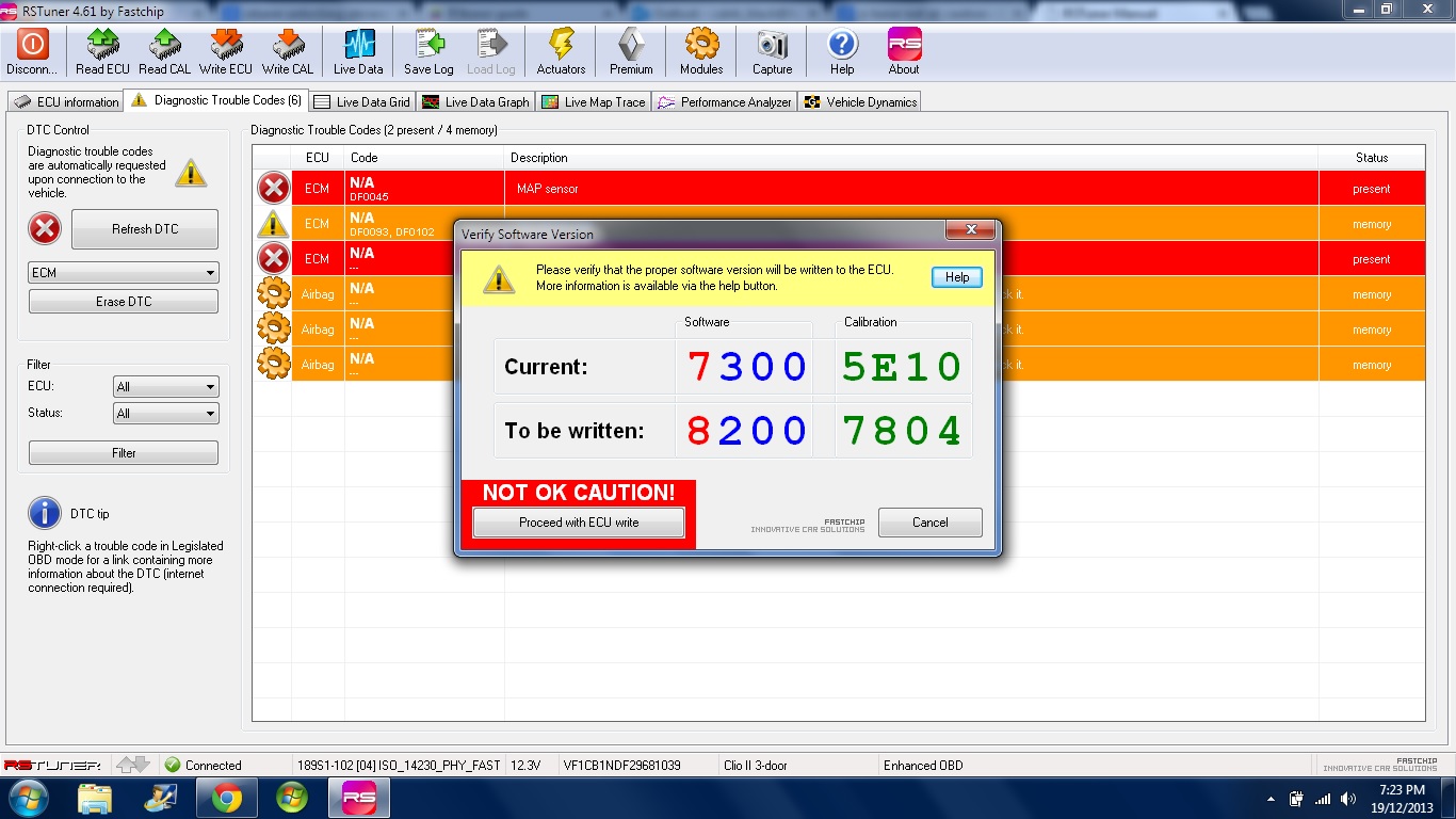 Hello, So im on putting the rs tuner on my car (172 cup) backed up the ecu and went to write ecu when the not ok caution came up see pic, ive read a thread where people say it just needs updating to the newer version is the picture ive posted the part where I update it and carry on?