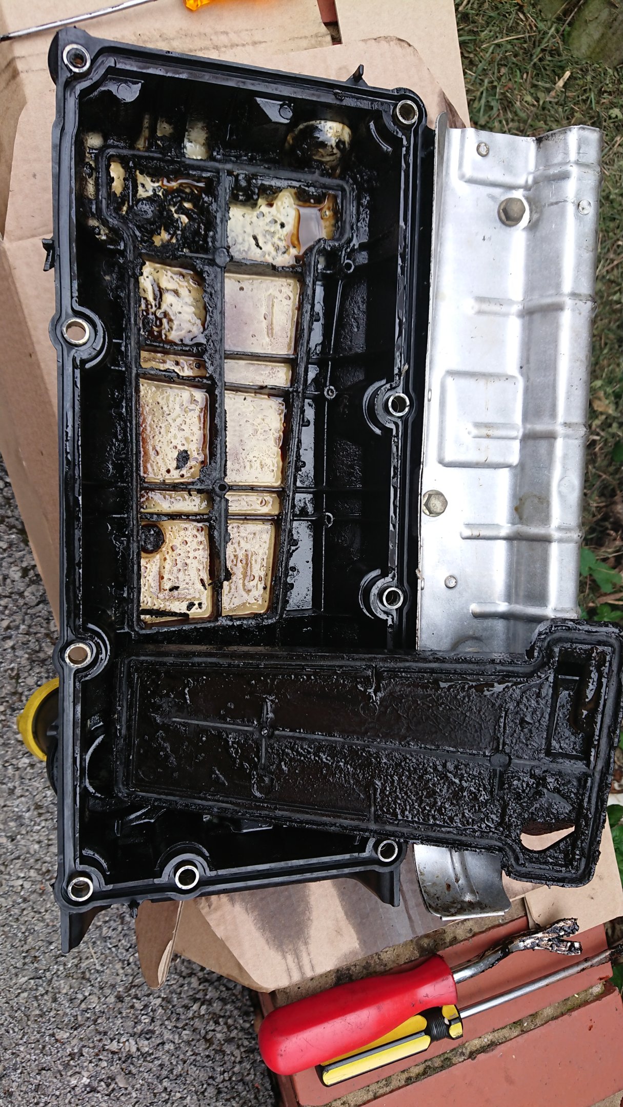 I did see with the cam cover off there's some kind of plate on that side, is there a filter or something in there as there was so much crap in that cover I jet washed it maybe it just needs drying out or something?