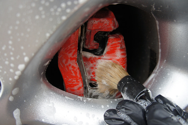 After the wheels, G101 was used on the more intricate parts of the car with a Valet Pro Detailing brush: