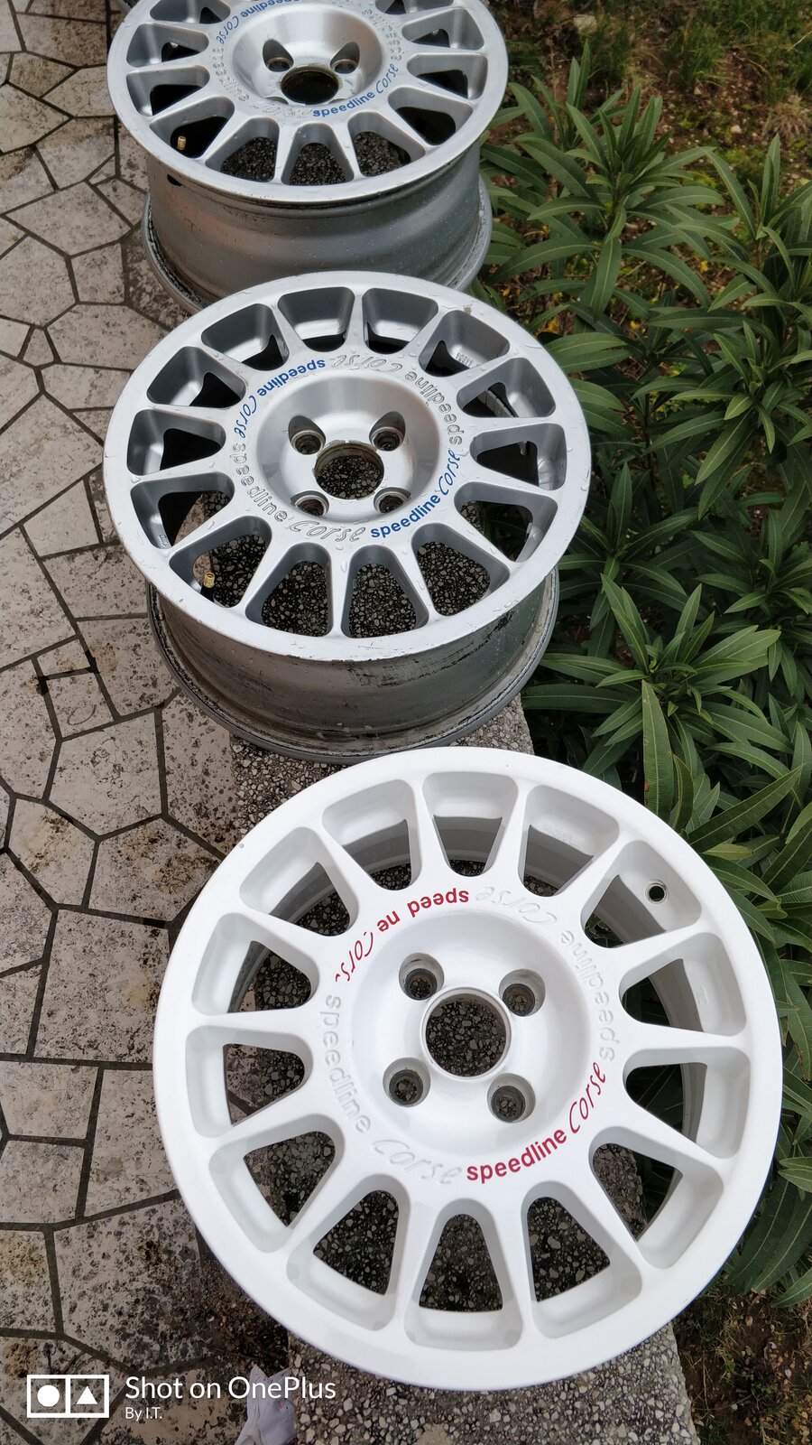 Both wheels are speedline 2118, the silver is et 43 and white et 38.