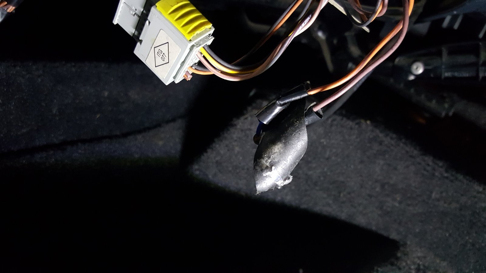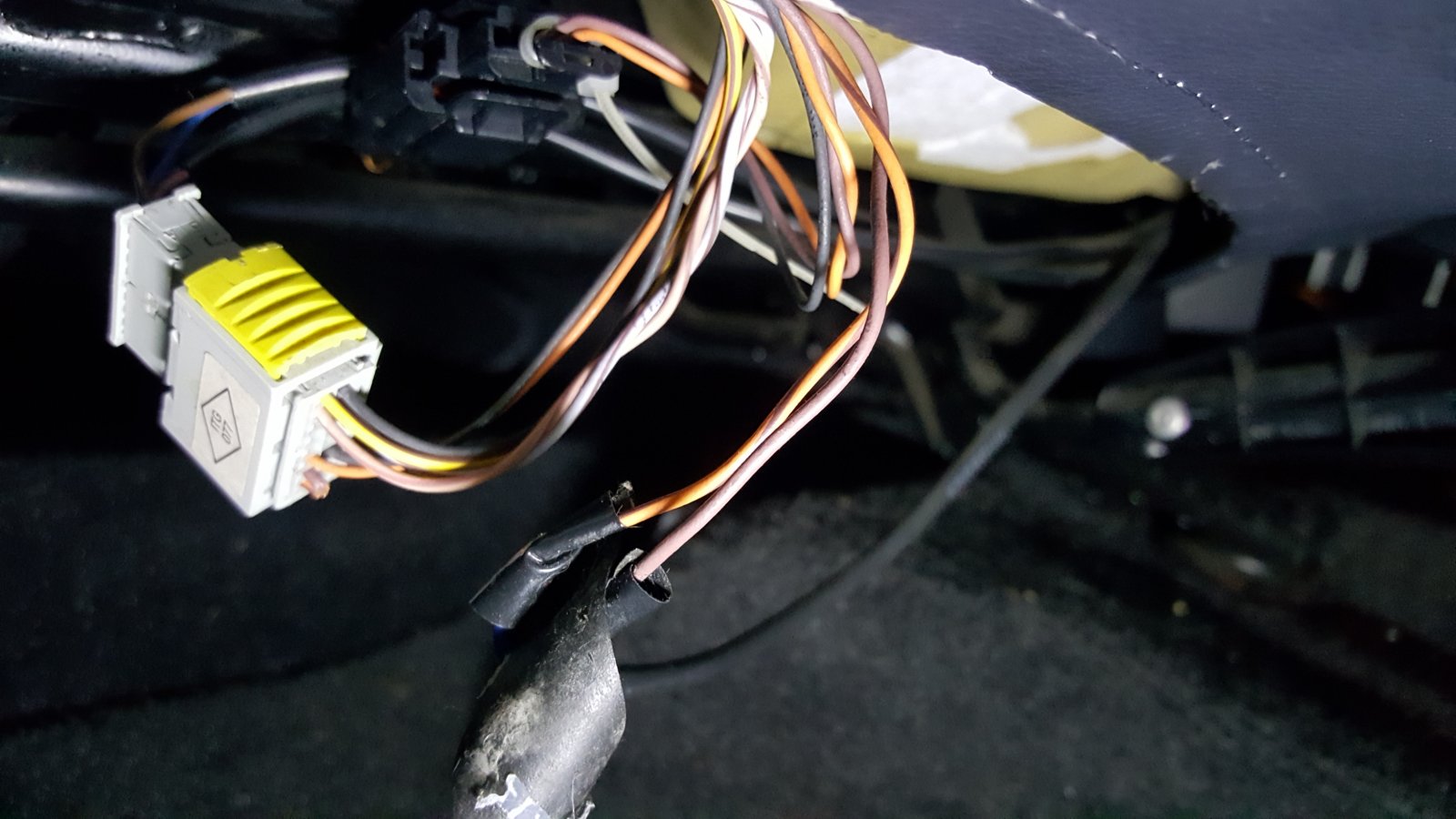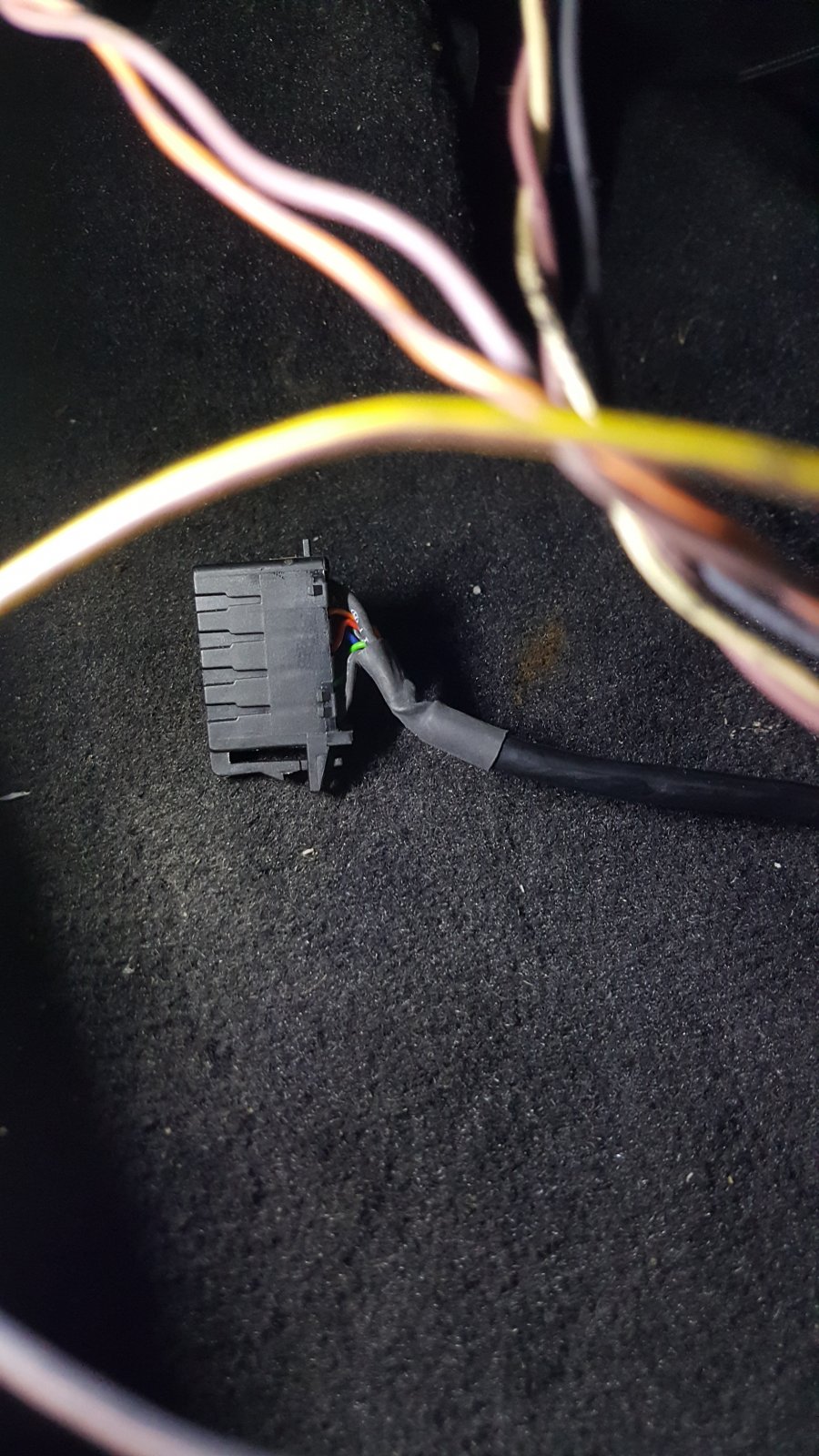 - Under passenger pictures first (First 3 pics): only this black plug present (attached to under seat) and two loose wires that have been cut off!!.