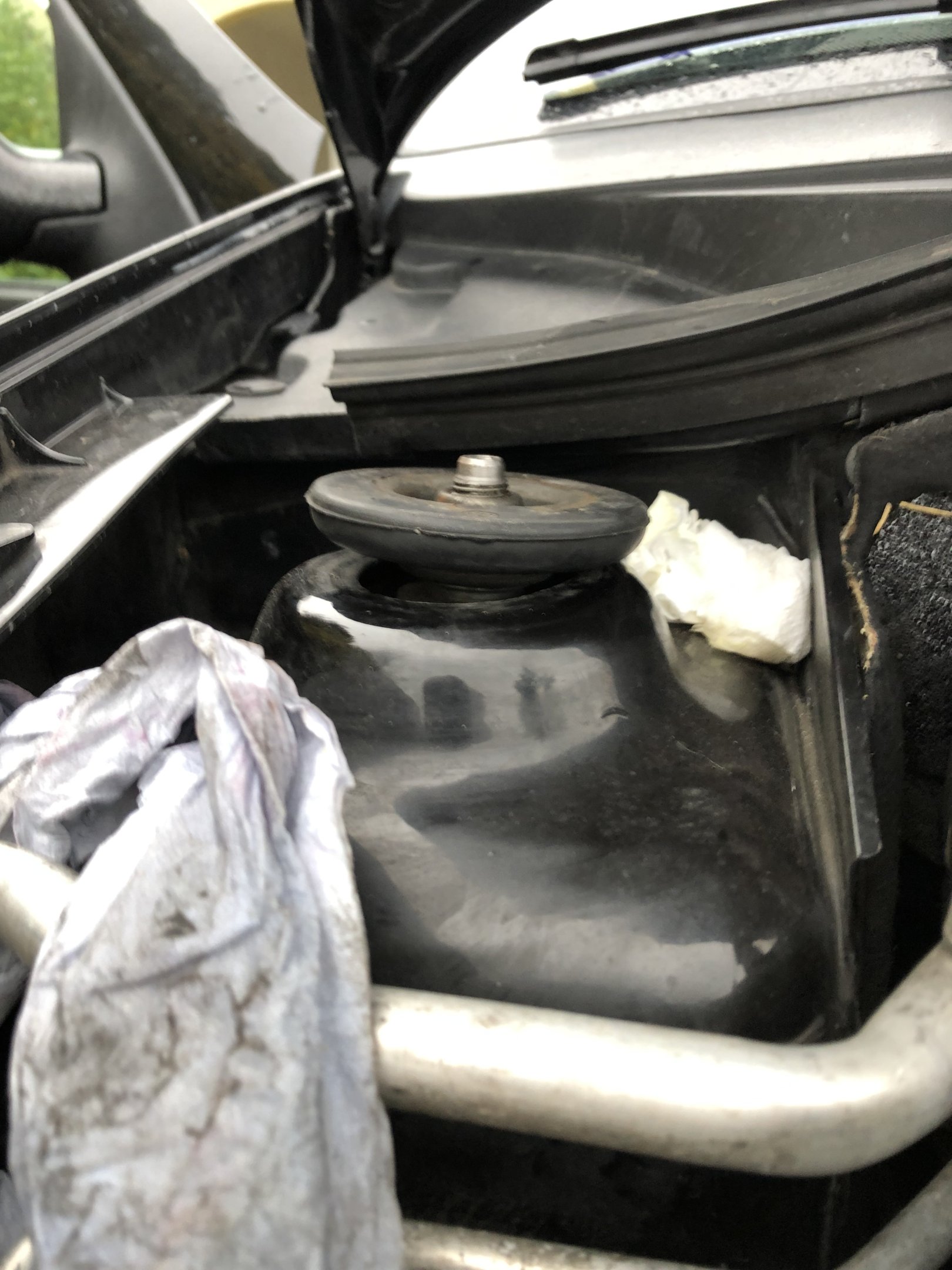 It creaks under braking acceleration and turning the wheel side to side, i opened bonnet and can’t remenver the top of shocks what they looked like when on original shocks.... I’m not sure if these are sat to high??? See pics pls