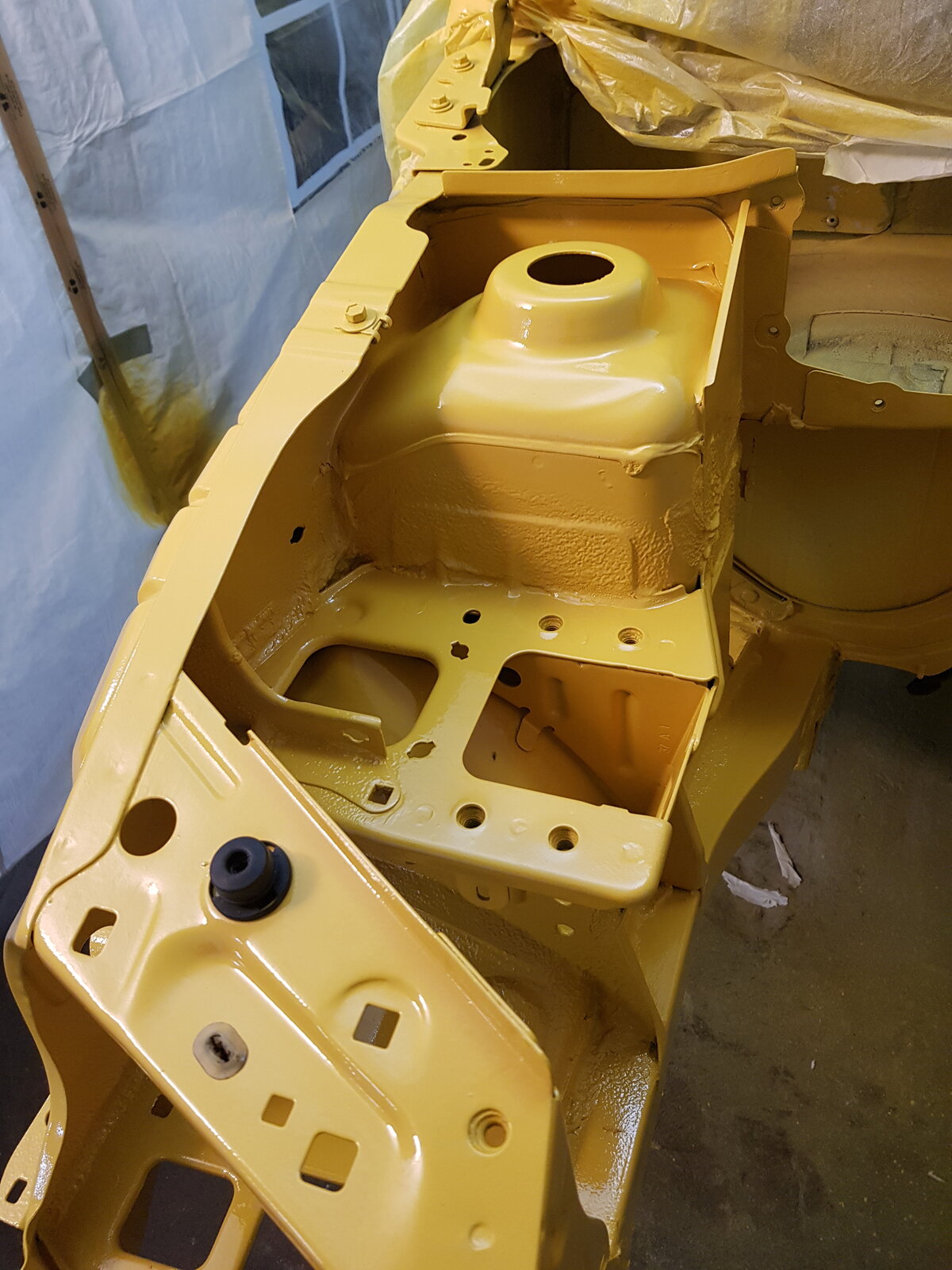 like by the look of the paint. The wing repairs are certainly questionable! can see pin holes from all the catty in lower quarters, door shuts etc are all 'dry' and not shiny, Door edges/bonnet edges next to no paint. The overspray on the underside of the car from primer and paint on all the powder coated bits would bring a tear to a glass eye.