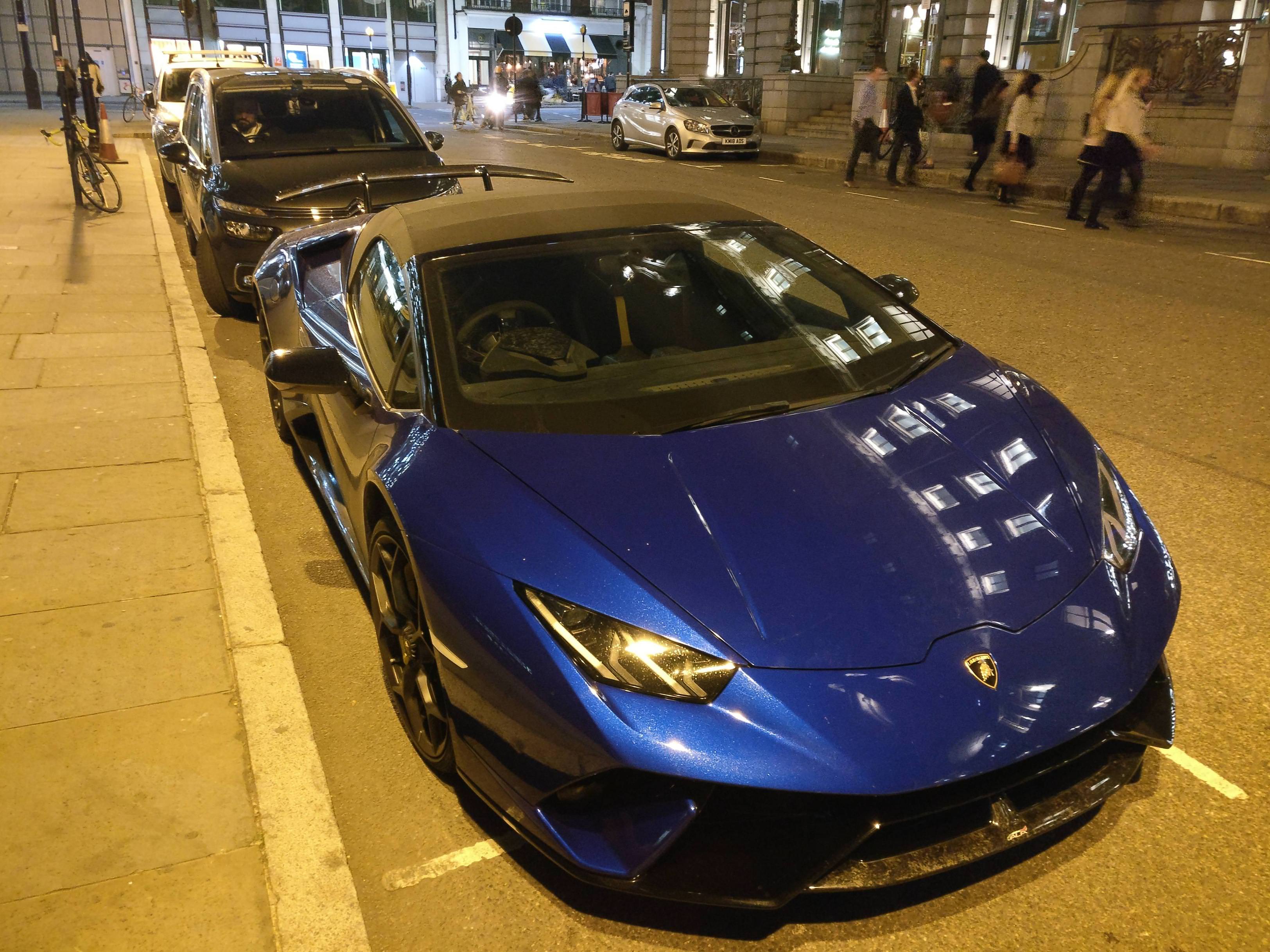 Haha, I know!! I saw it a few weeks ago in traffic in the morning & the dude had the roof off, it was loud AF even stationary. I didn't think I'd see it again, so when I saw it last night I thought I'd better get some pics. It is in London (by Liverpool St station) so I see a fair few around.I love how the performante is just casually parked at the side of the road