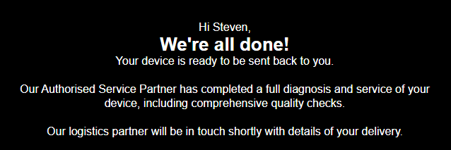 I escalated this as a complaint & told them not to send the device back a) unrepaired or b) unreplaced, until my complaint is resolved. They assured me that the device was being held until the complaints team had spoken to me today.