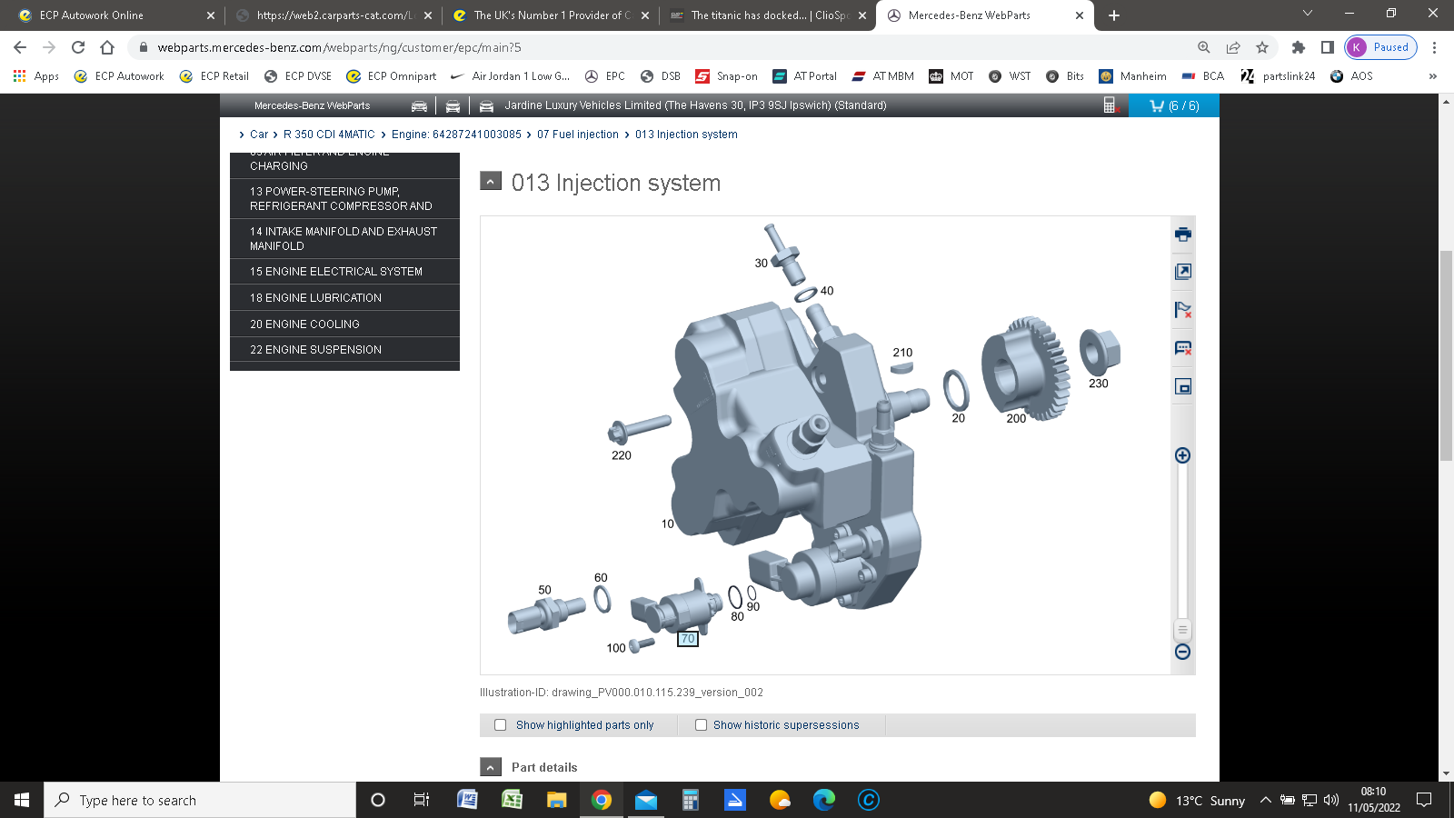 When you buy a replacement engine (from Dronsfield or Prestige) they supply the fuel injection with it, so you should have a spare set of injectors, fuel pump and rails w/ sensors etc.