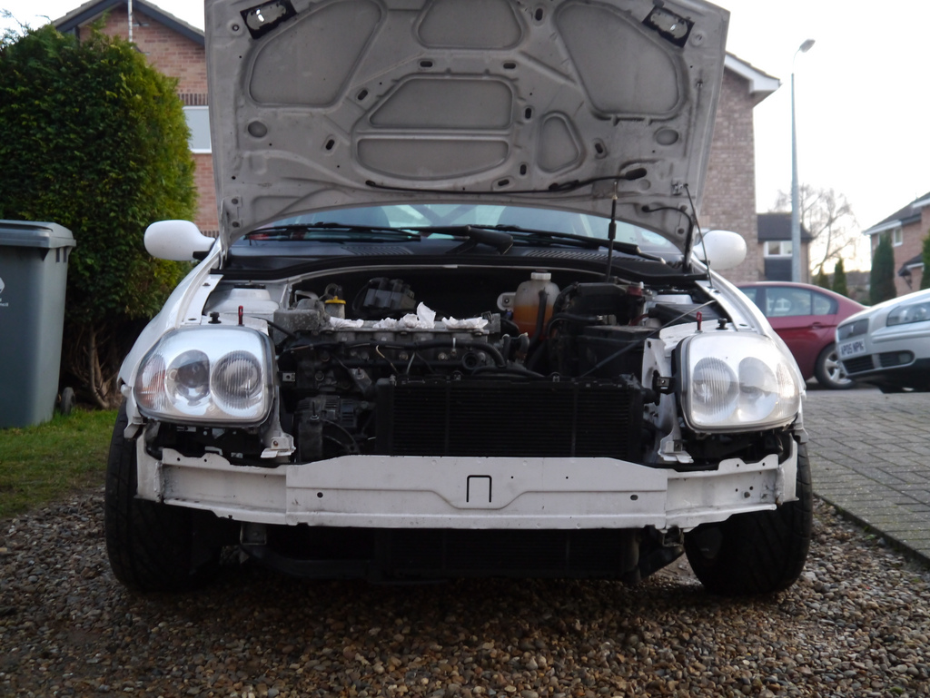 Bumper off, inlet plenum off, slam panel removed ready for ITB's