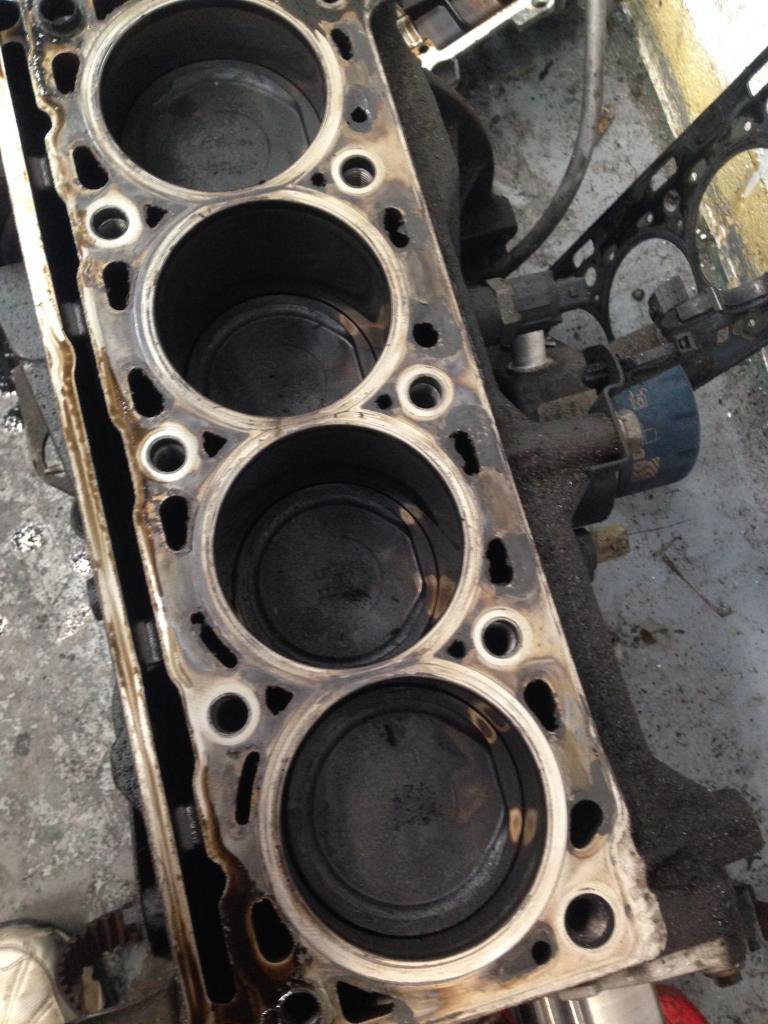 Cleaned the pistons and upon inspection two were cracked. One with a large piece missing, not sure were that went or which cylinder as there is no obvious damage to the bore!