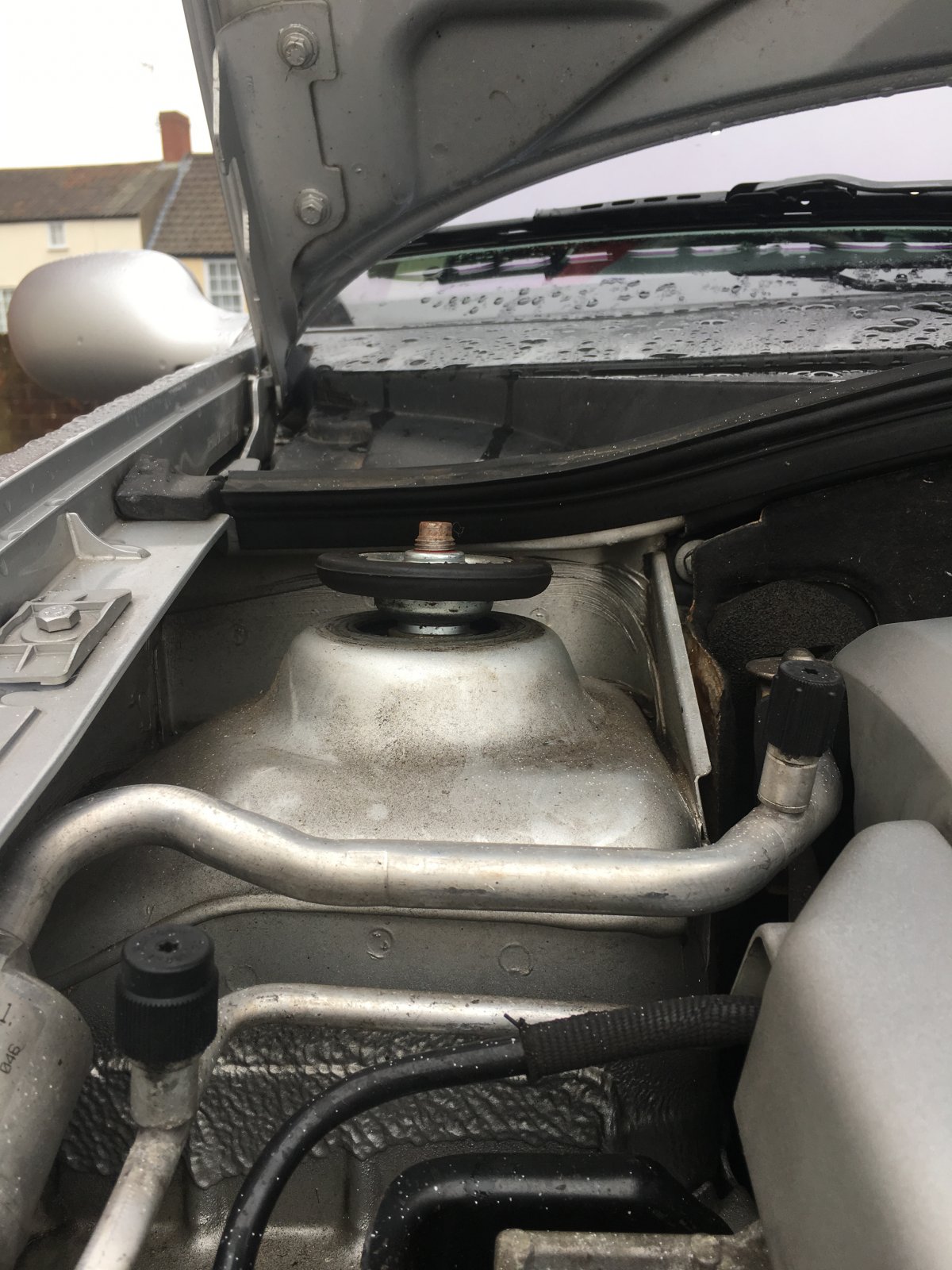 I don't think it'll be the springs though, that would't cause the top of the mounts to sit so high. I reckon something is missing or fitted incorrectly, or even the wrong mounts or dampers?
