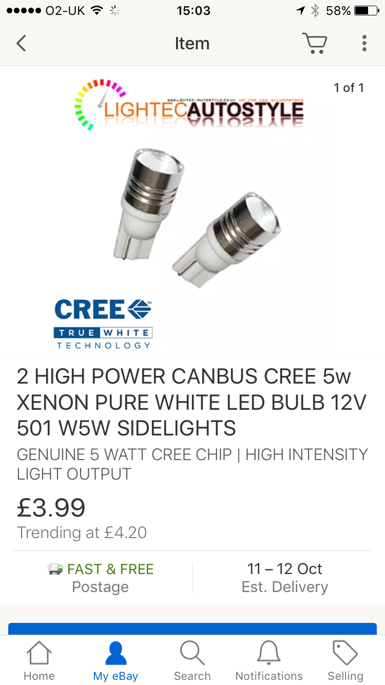 In case anyone's interested, just fitted these led cree sidelight bulbs to the 172 today and they are brilliant, literally! Suit the xenons perfectly, and nice and cheap too. Highly recommend these if you're looking to upgrade!