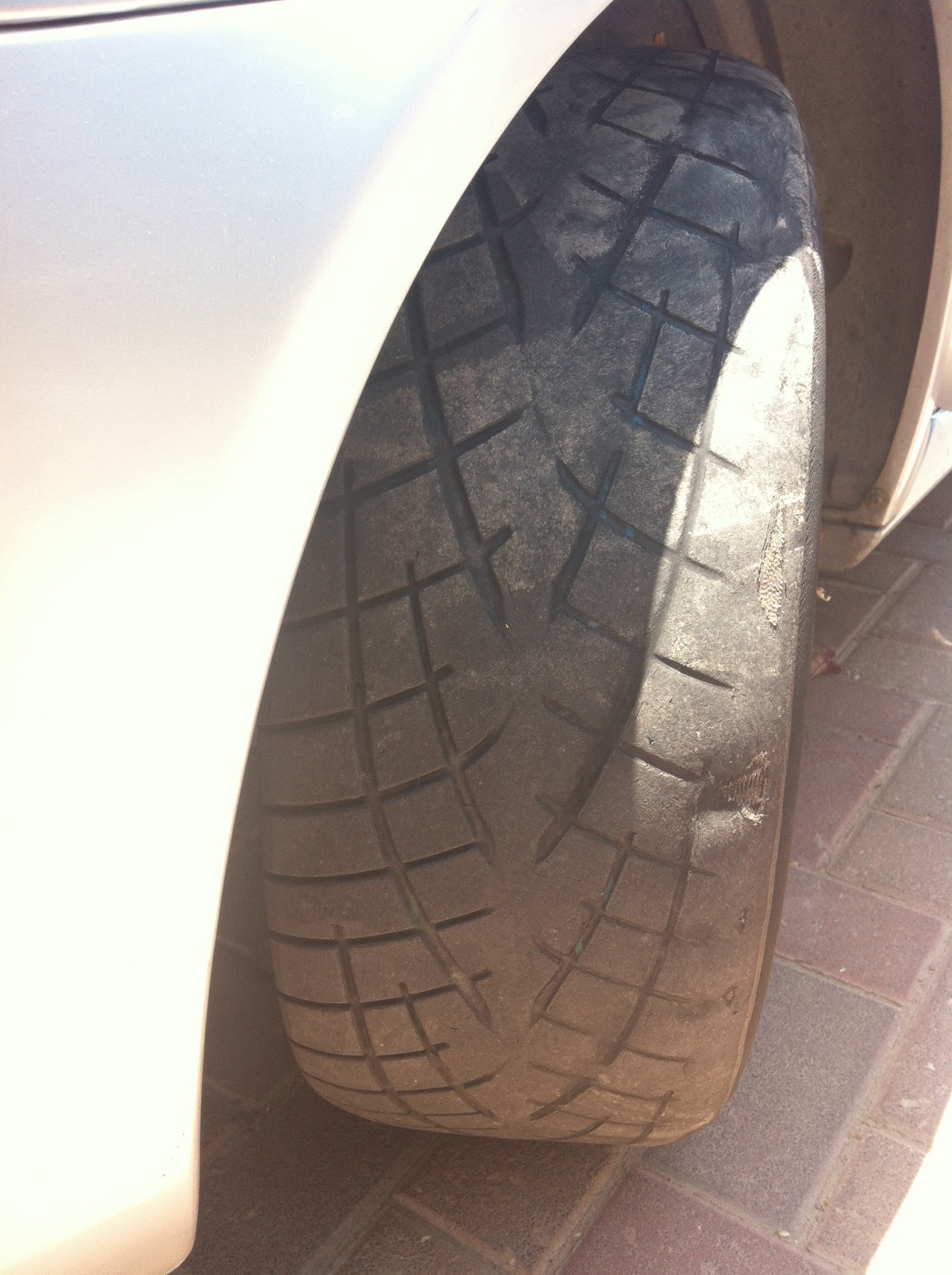 Now I noticed very weird tire wear, only on the outside edge, and only on the right tire(image flipped).