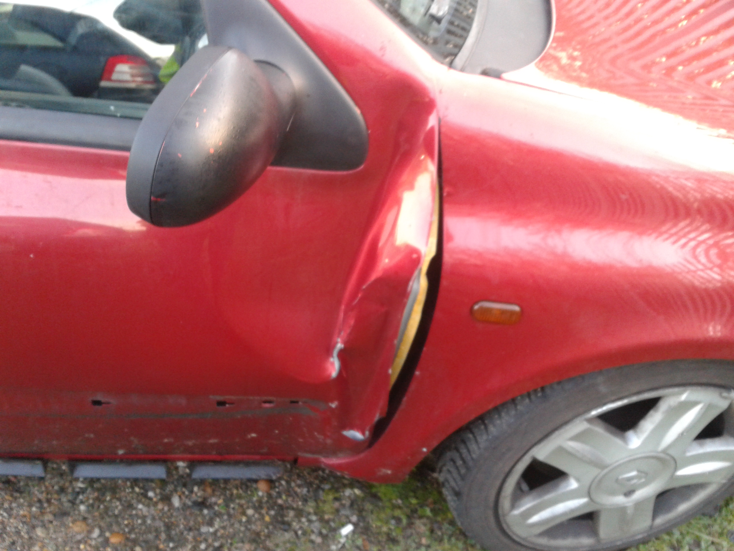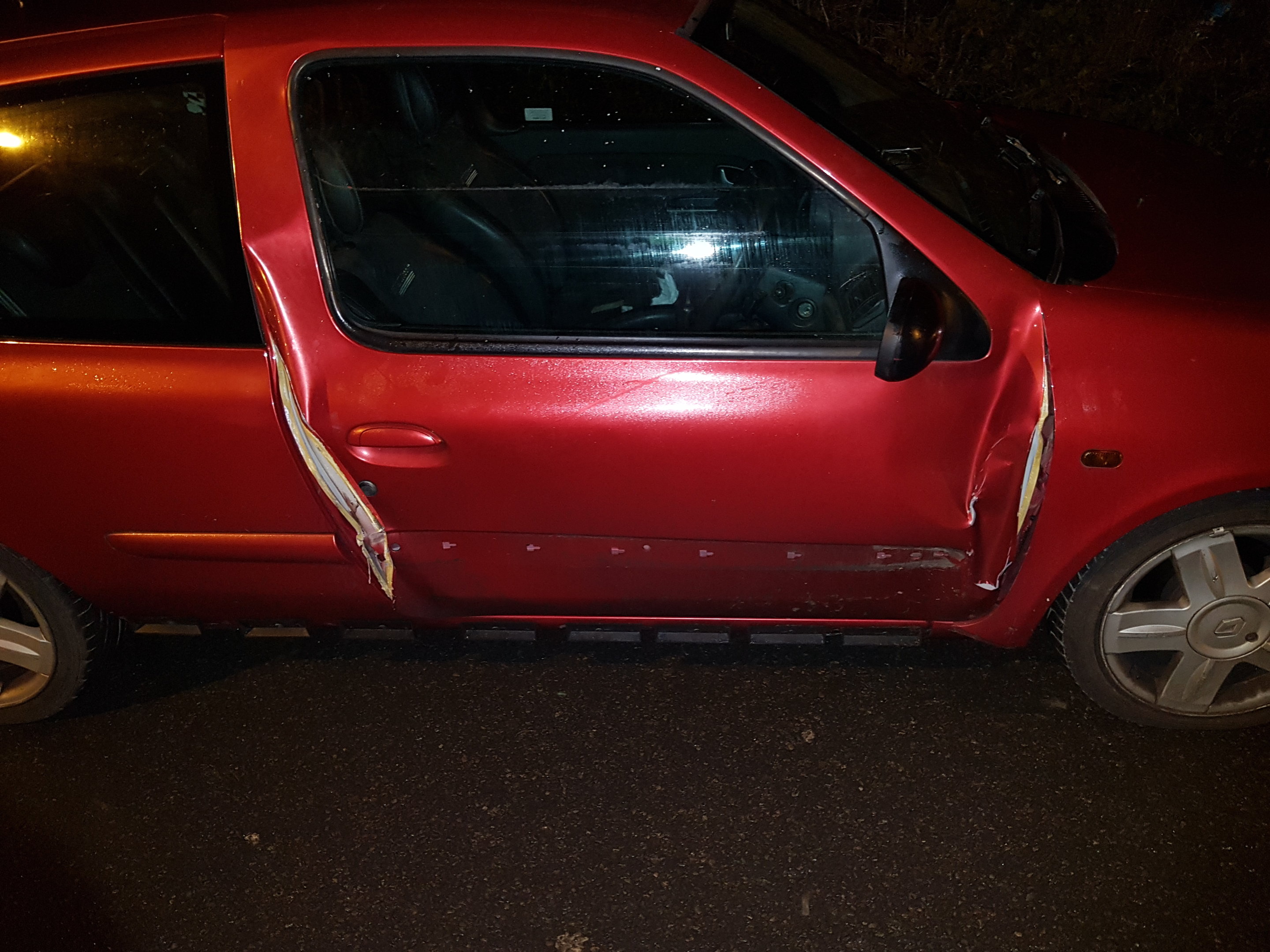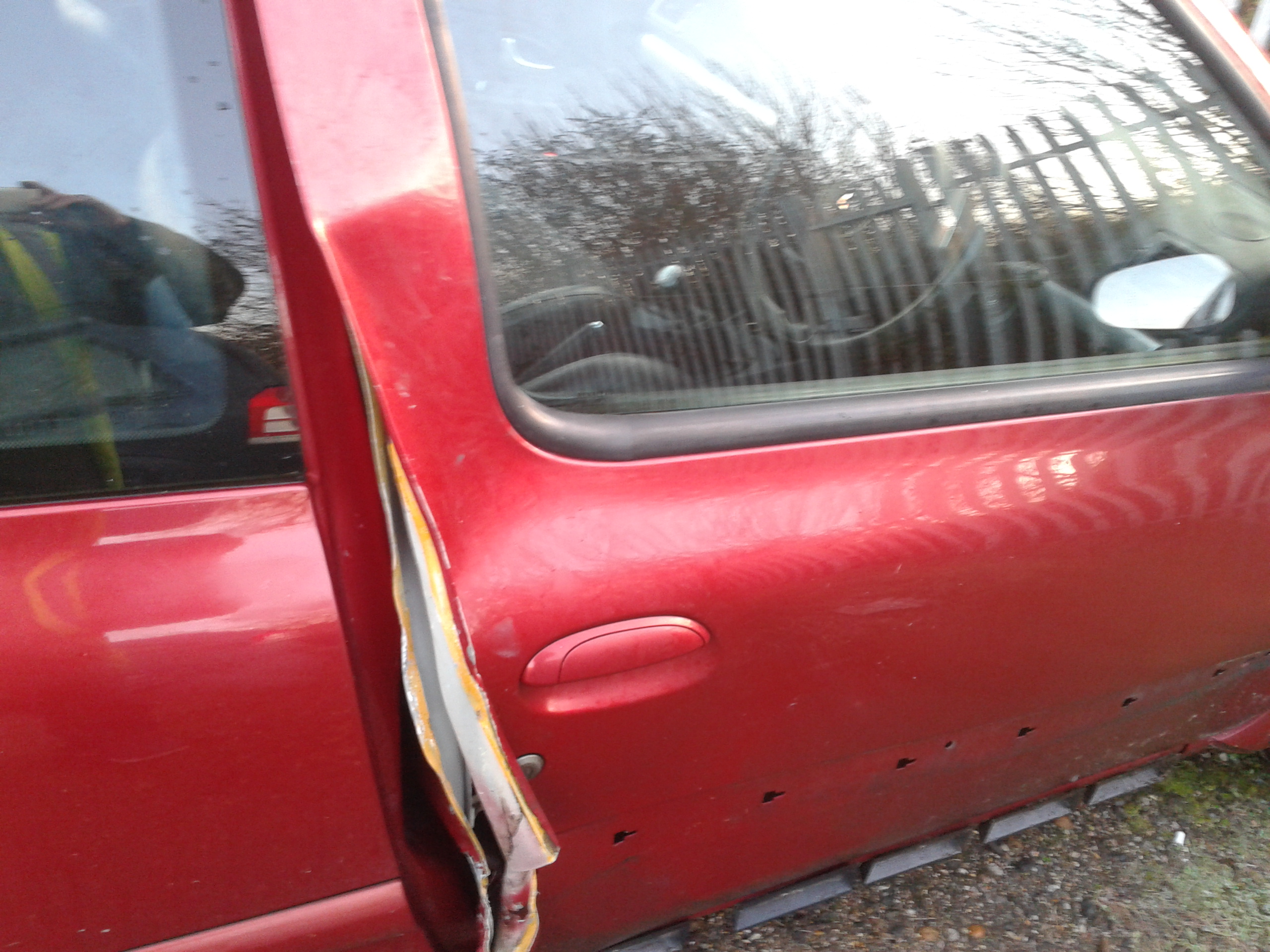 Banged a straight but imperfect door back on for MOT, hinges not sat right, but I`m going to f**k her Christmas up , if she does not pass on my estimate to her insurers Hastings for a full repair.