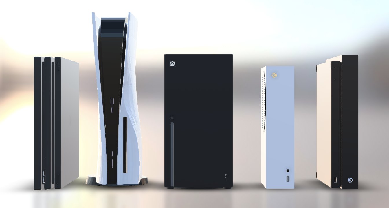 Pic shows: PS4 Pro, PS5, Series X, Series S and One X.